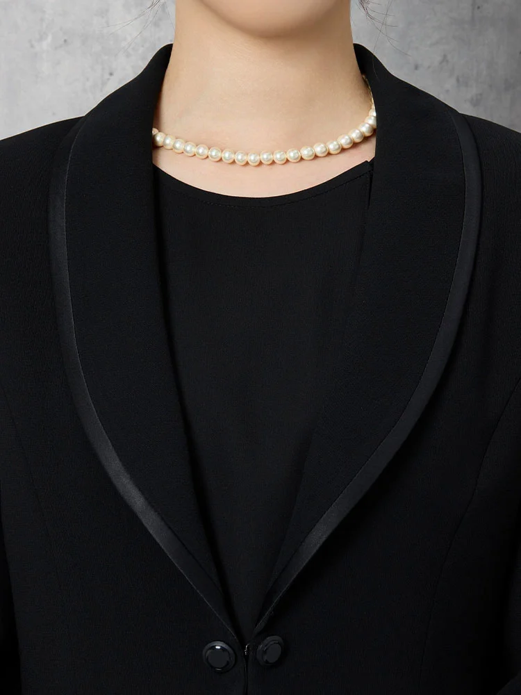 【WEB限定フォーマル】即納ショールカラーアンサンブルジャケット/ワンピース黒無地通年【レディース】