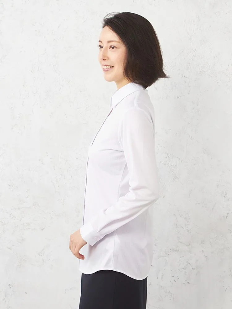 【完全ノーアイロン】長袖ブラウスi-shirt白無地スキッパーアイシャツ通年【レディース】