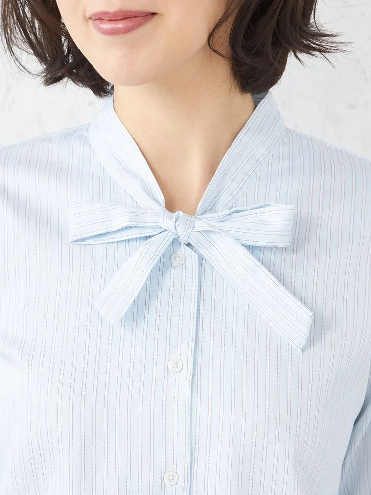 【形態安定】ブラウス 長袖 9分袖 ボウタイブラウス ストライプ SOFFICE 通年【レディース】