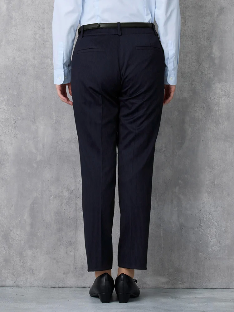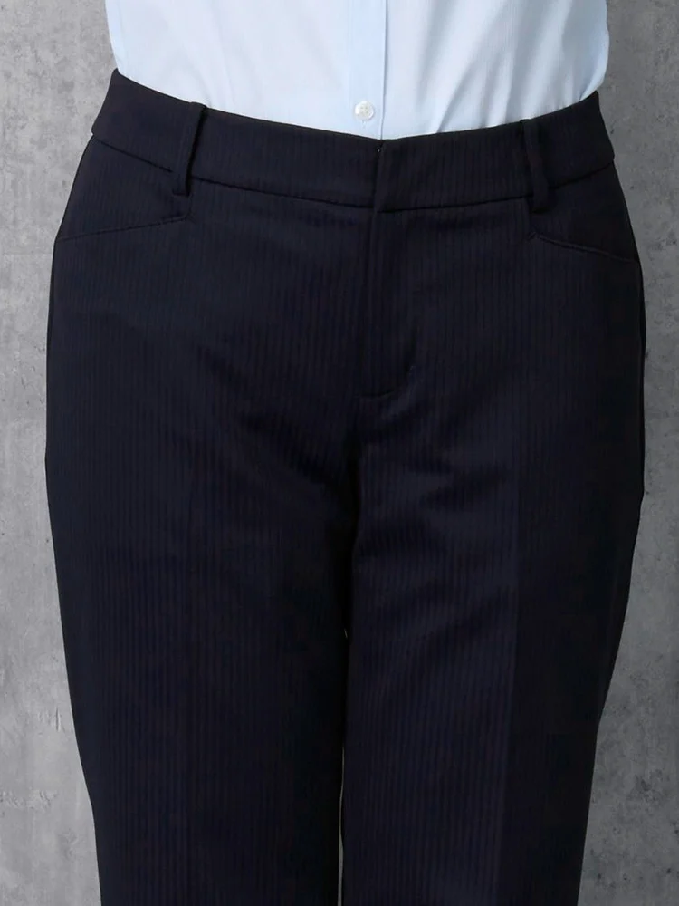【ウォッシャブル】パンツストレート2WAYストレッチブラックシャドウストライプS&Mknightsbridge通年【レディース】