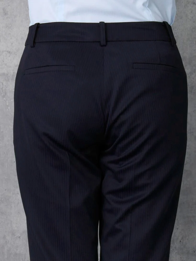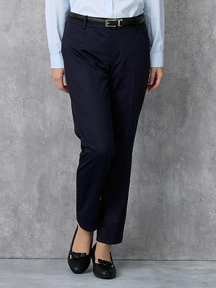 細やかなストライプ柄がスタイリッシュなパンツです。