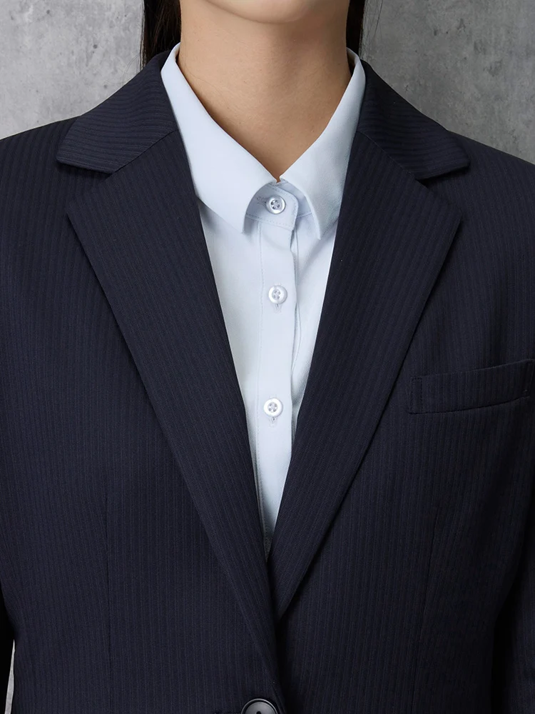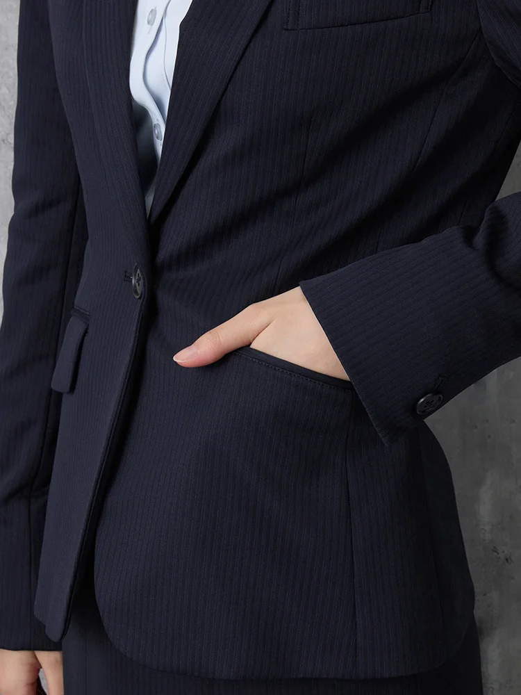 1つボタンのデザインで、シンプルかつスタイリッシュな印象を与えます。洗練されたシルエットが特徴です。