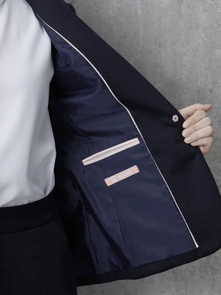 【ウォッシャブル】ジャケット1つボタン2WAYストレッチブラックシャドウストライプS&Mknightsbridge通年【レディース】
