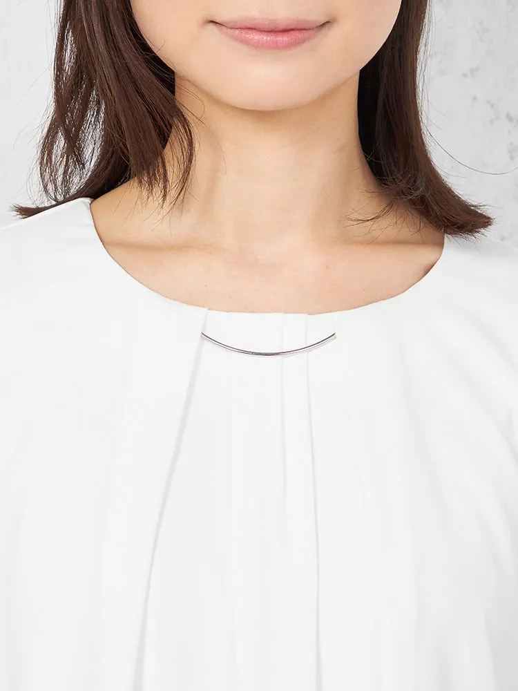 【裏地つき】ブラウス 長袖 二枚重ね 取り外しバー付 タックデザイン 無地 SOFFICE 通年【レディース】(ホワイト)