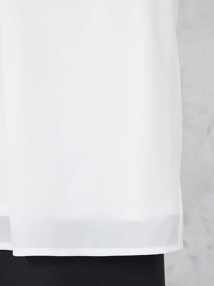 • ホワイト 【裏地つき】ブラウス 長袖 二枚重ね 取り外しバー付 タックデザイン 無地 SOFFICE 通年【レディース】 1236702266