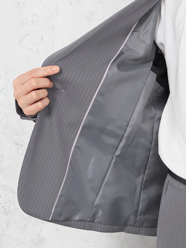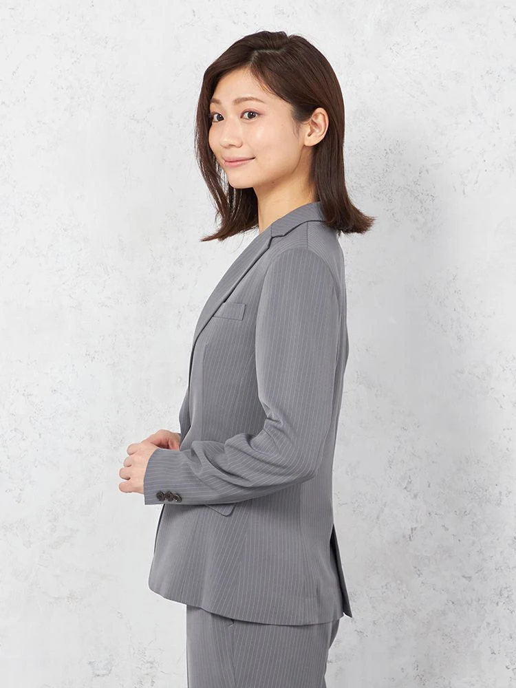 【パンツスーツ上下セット】ジャケット・パンツセット 1つボタン ウォッシャブル パンツスーツ ストライプ SOFFICE 【レディース】(L.グレー)