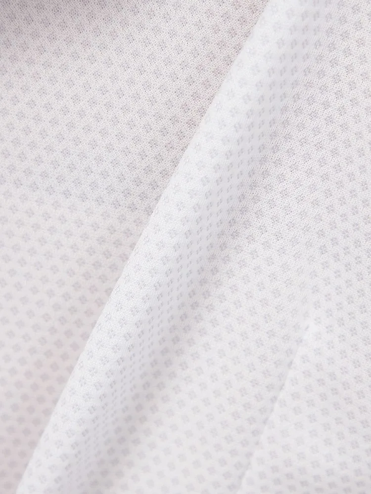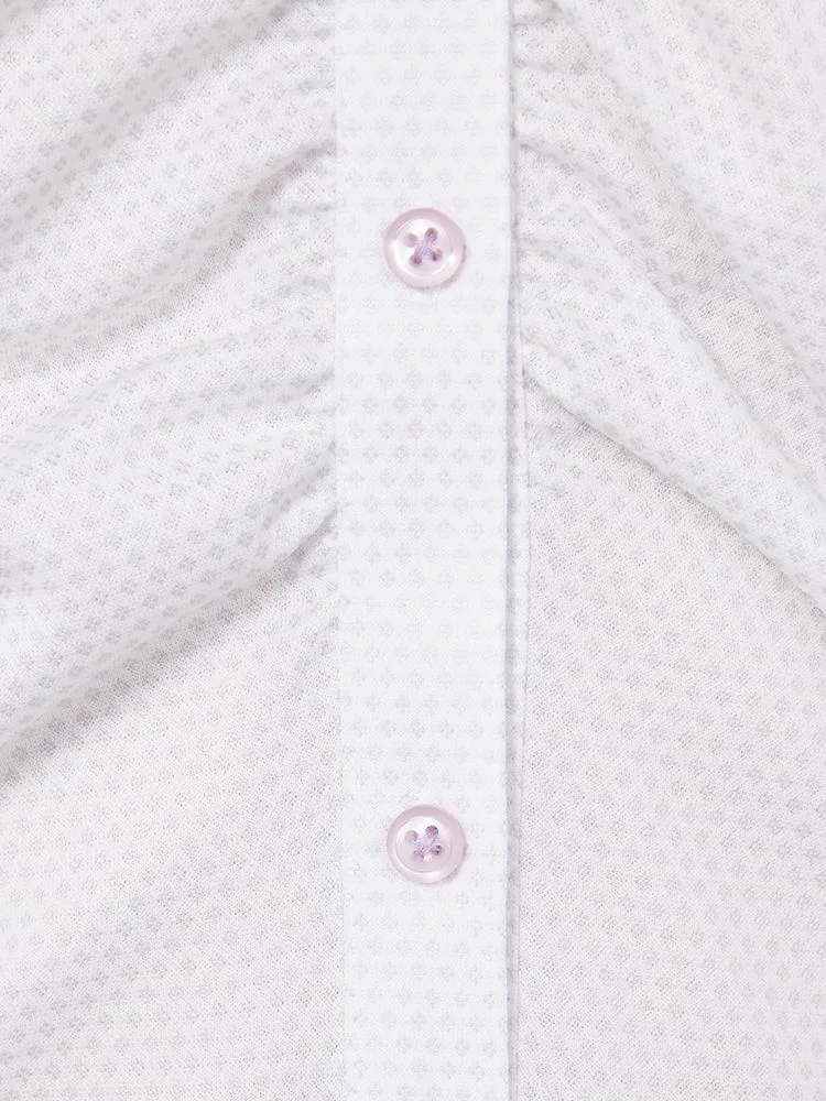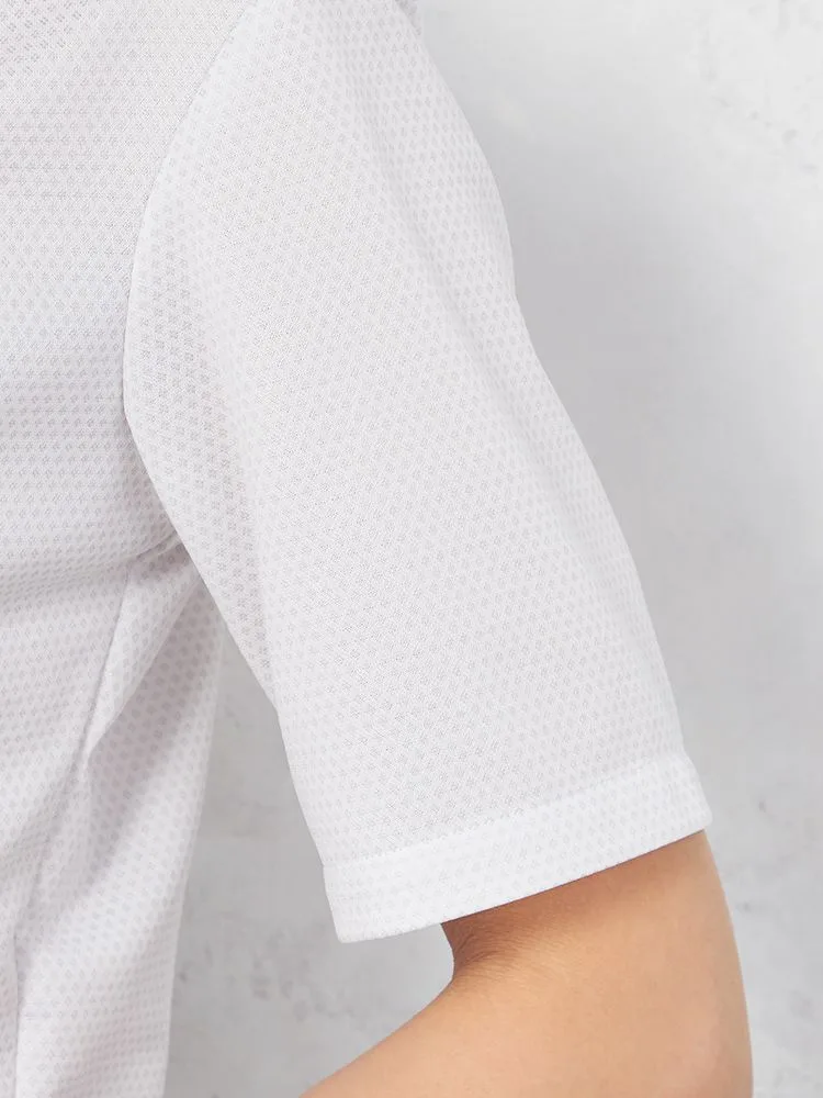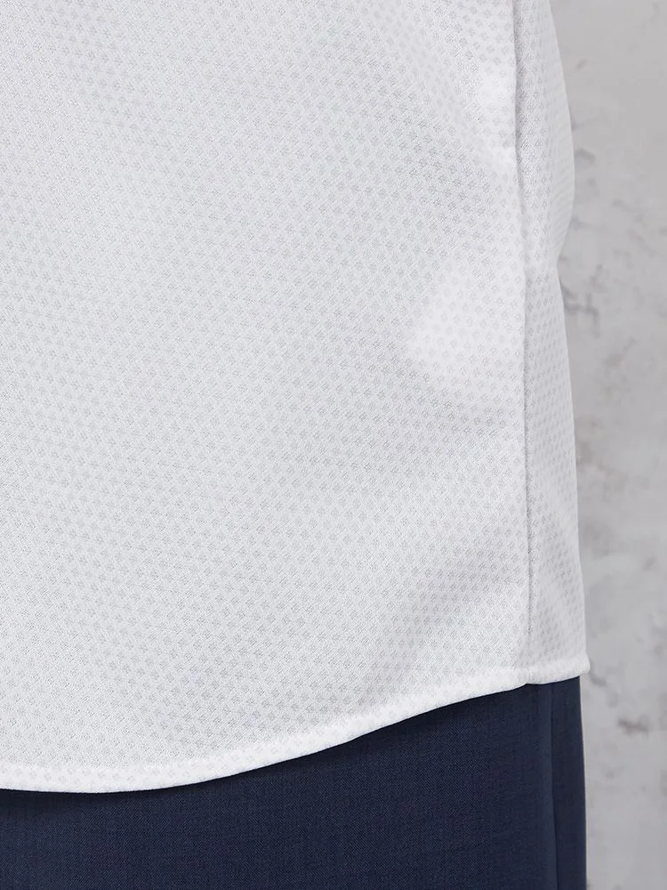 素材の細やかな模様がエレガントな半袖のスキッパーシャツ。