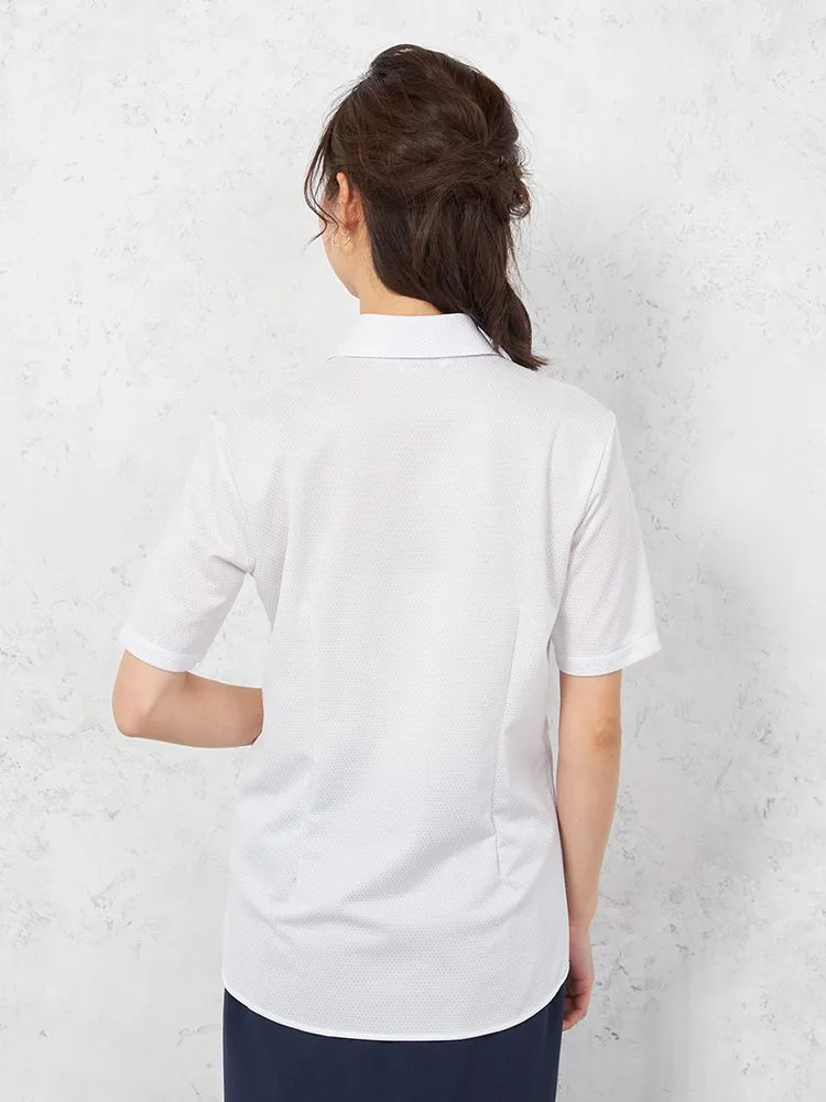 【完全ノーアイロン】ブラウス半袖シャツスキッパー【アイスライブ】冷感吸汗速乾白無地i-shirt春夏【レディース】