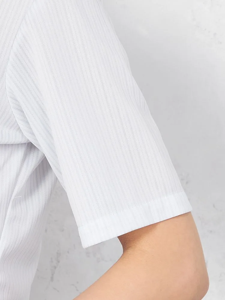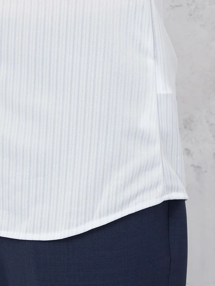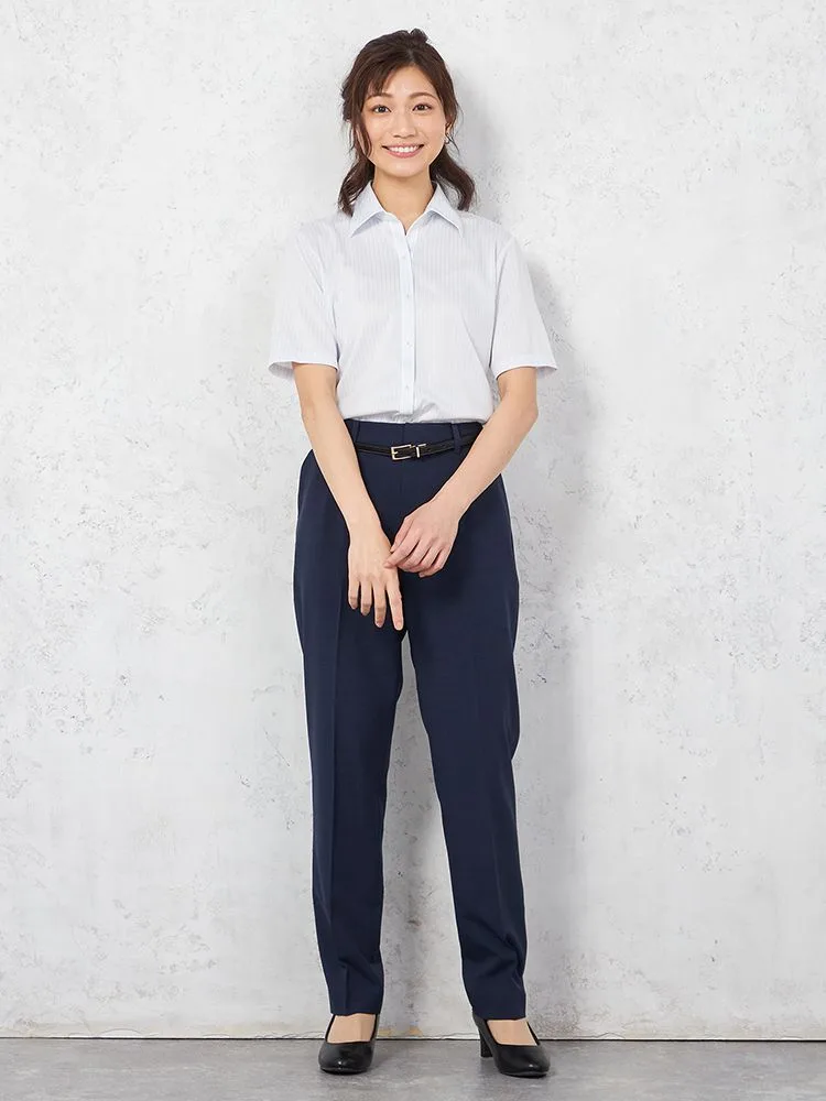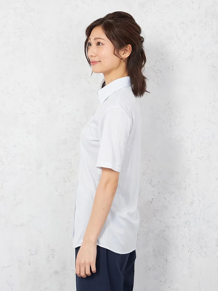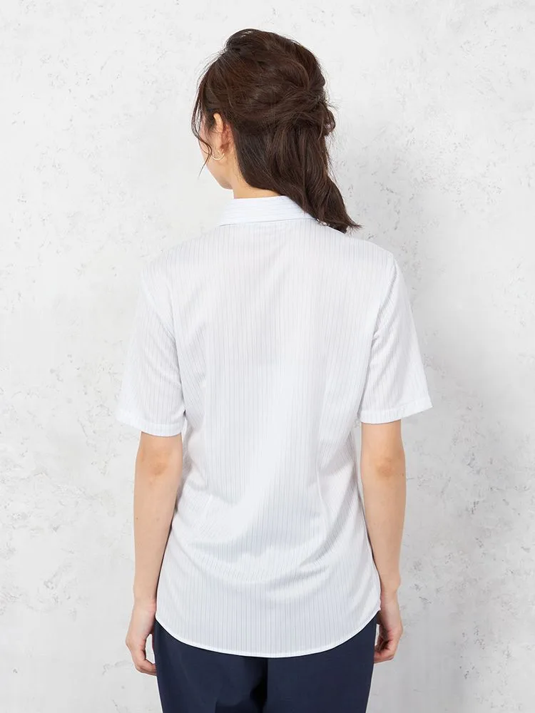 【完全ノーアイロン】i-shirtバイオセンサー半袖ブラウススキッパー白シャドウストライプアイシャツ春夏【レディース】