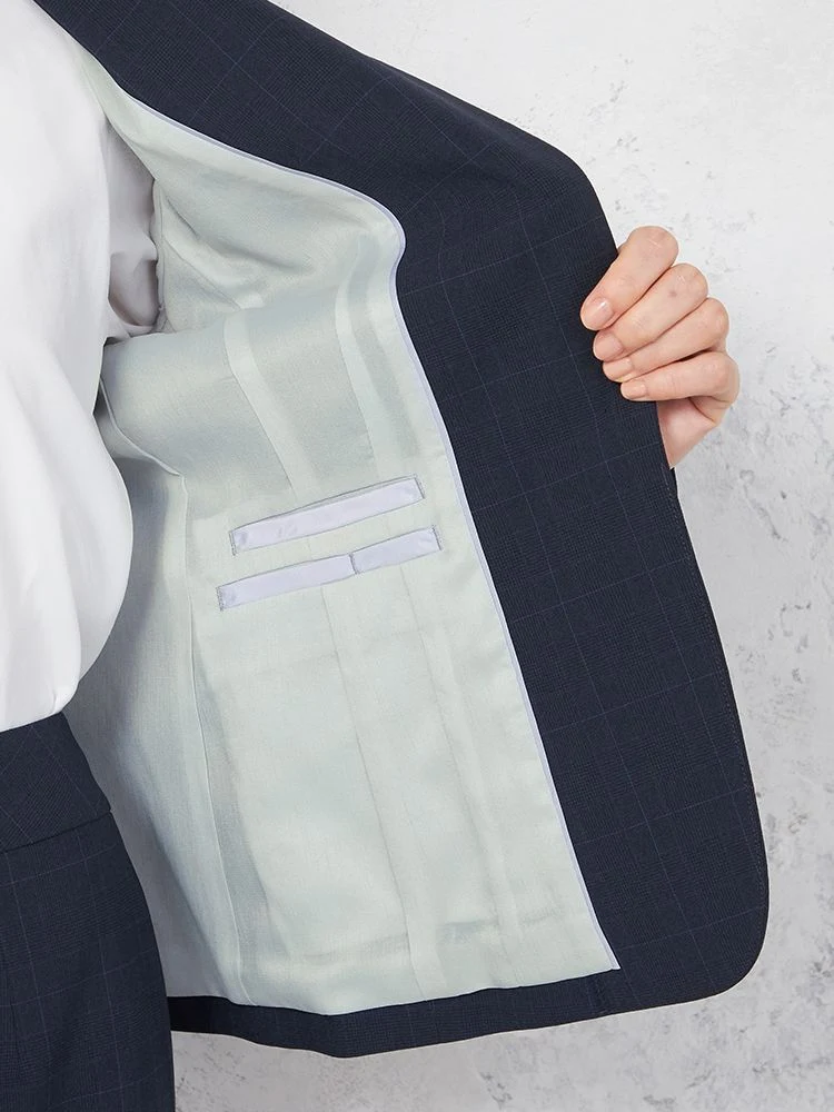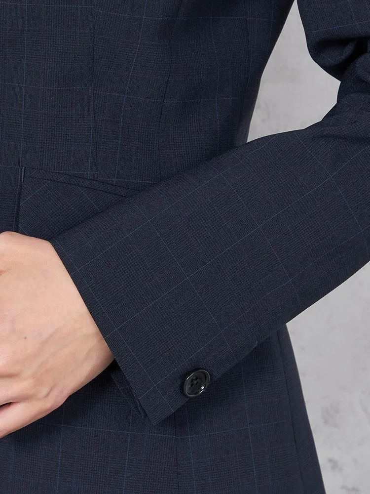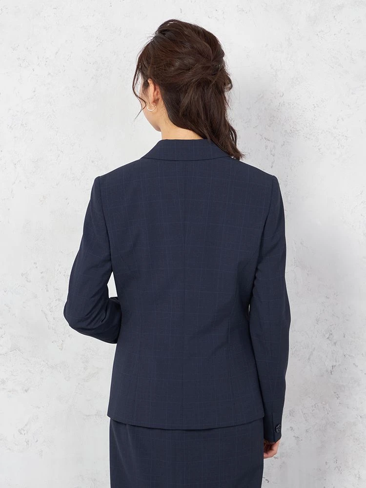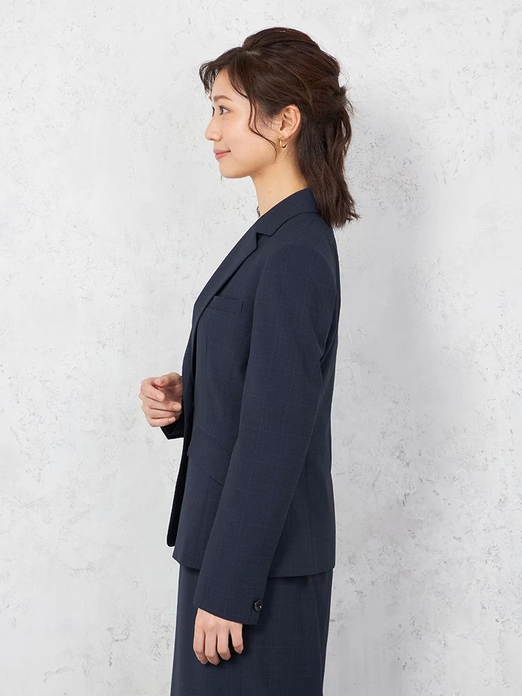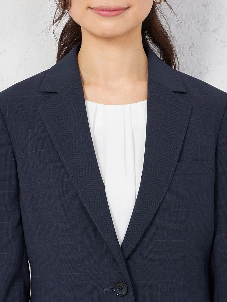 【UVカット&ウォッシャブル】ネイビーチェック ジャケット1つボタン ストレッチ SOFFICE 【レディース】