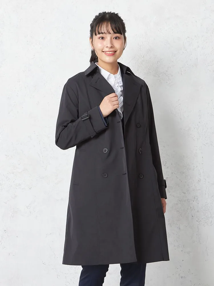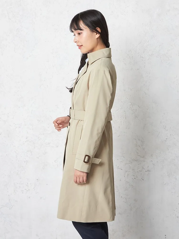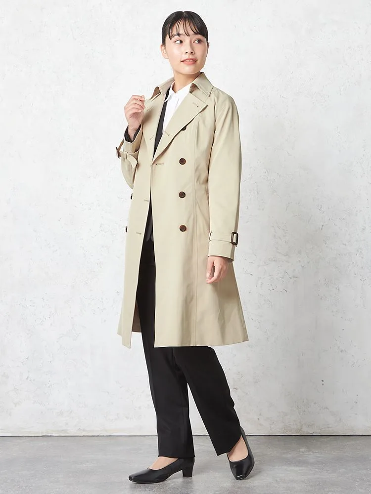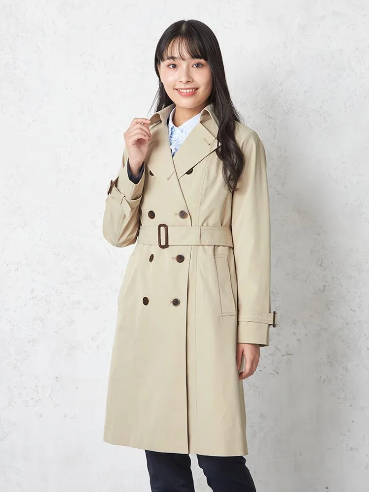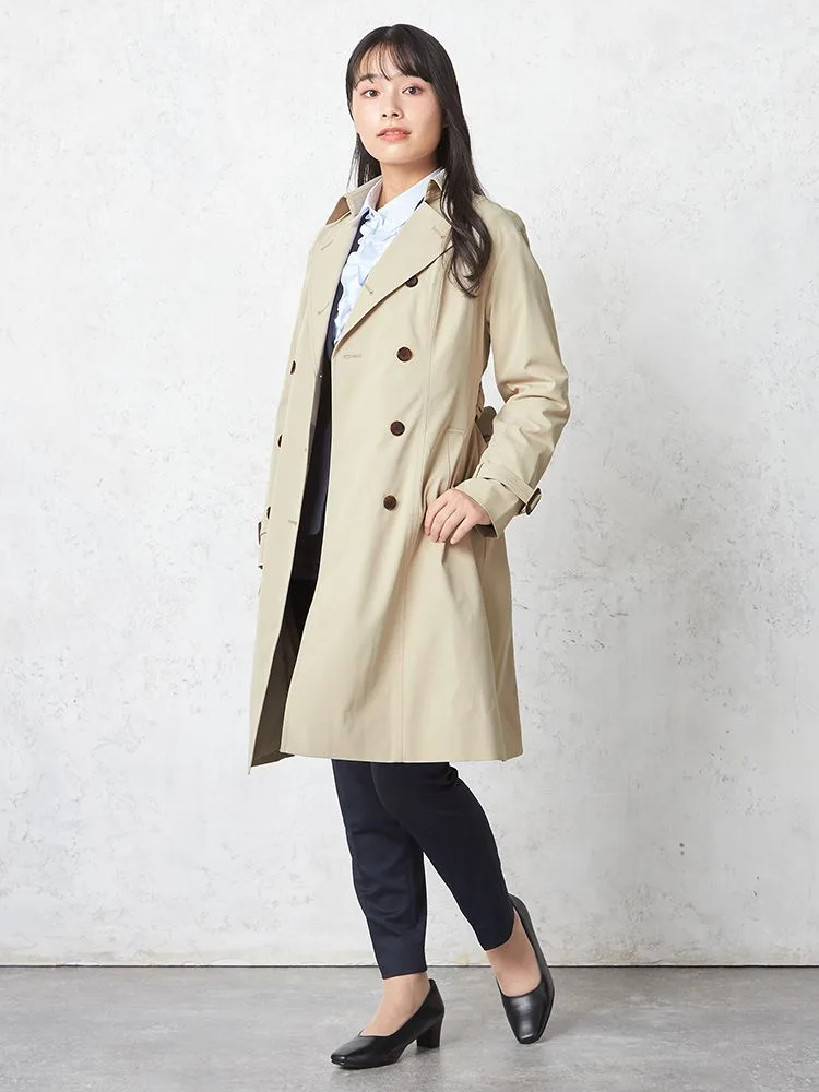 天気を気にせずに羽織れる撥水加工のトレンチコート。