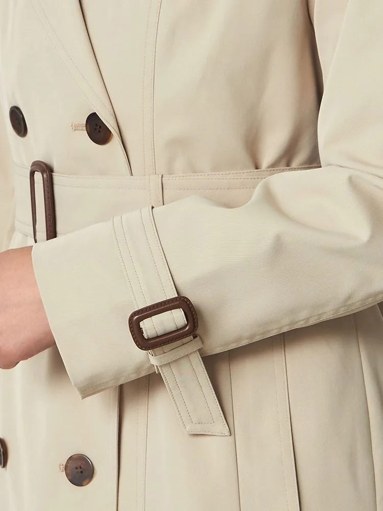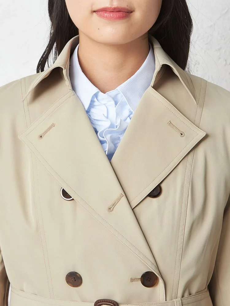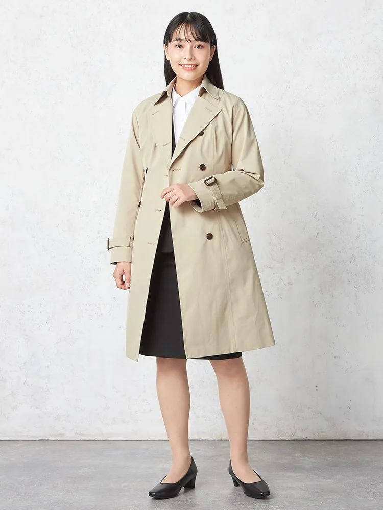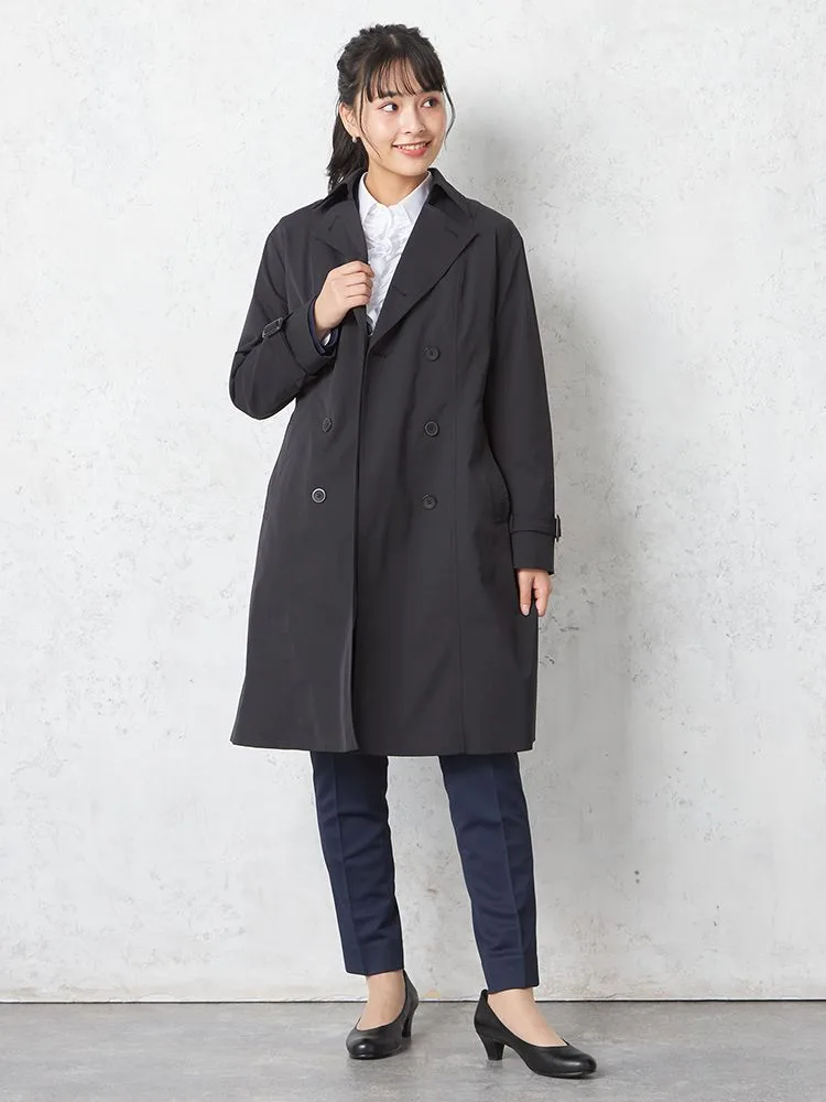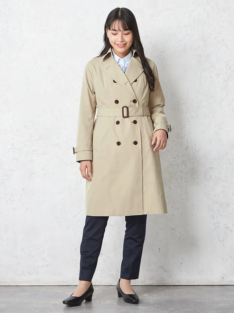天気を気にせずに羽織れる撥水加工のトレンチコート。