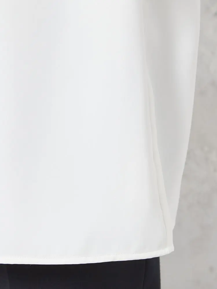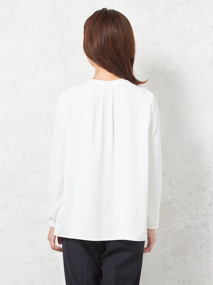 【ウォッシャブル】ブラウス長袖パール鼓釦ボウタイブラウス透けにくいストレッチ無地SOFFICE通年【レディース】