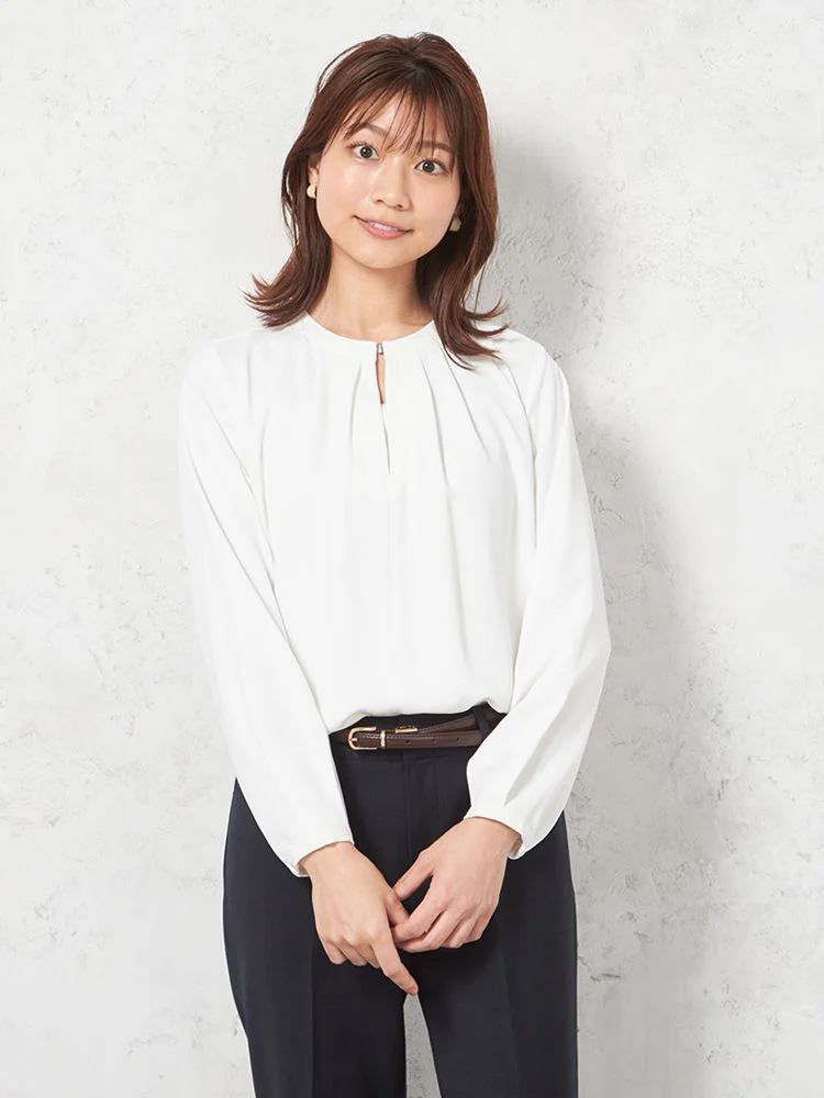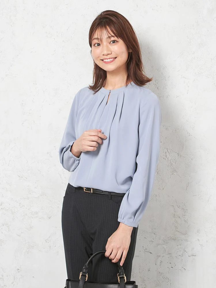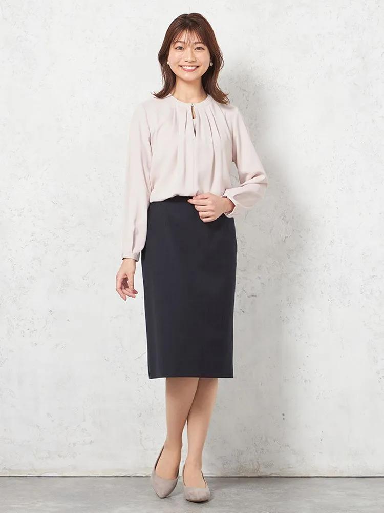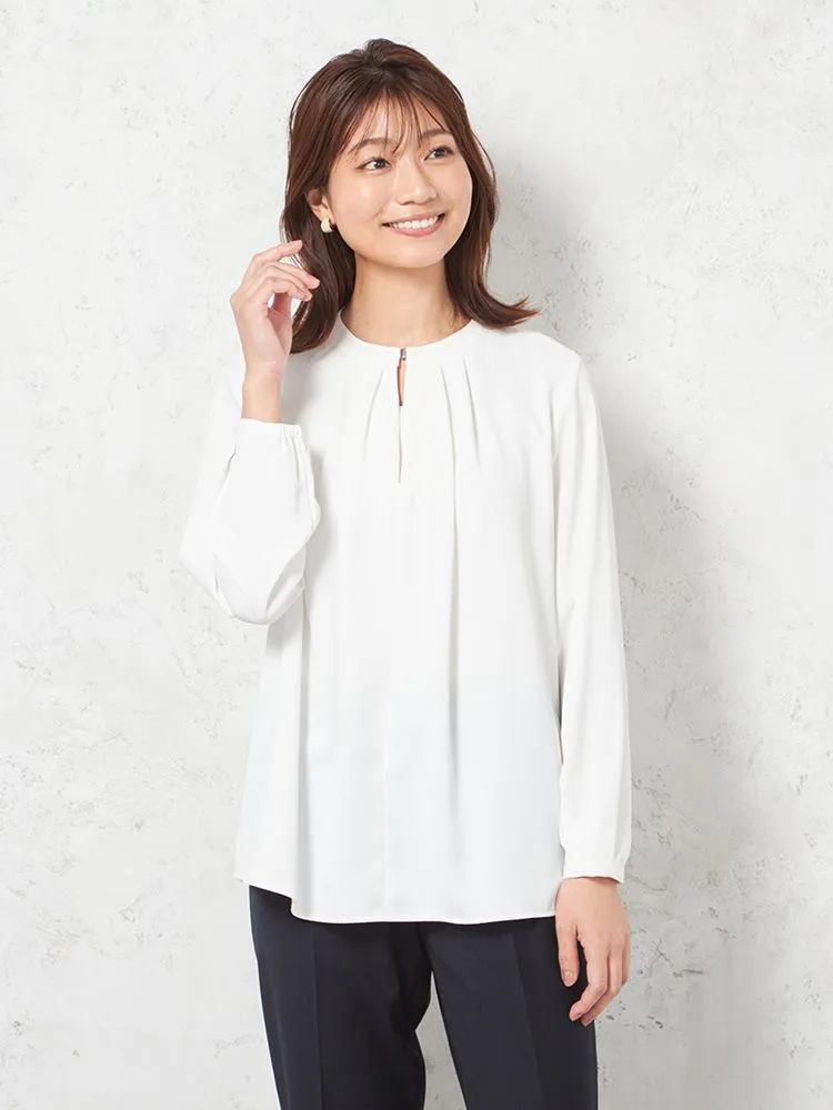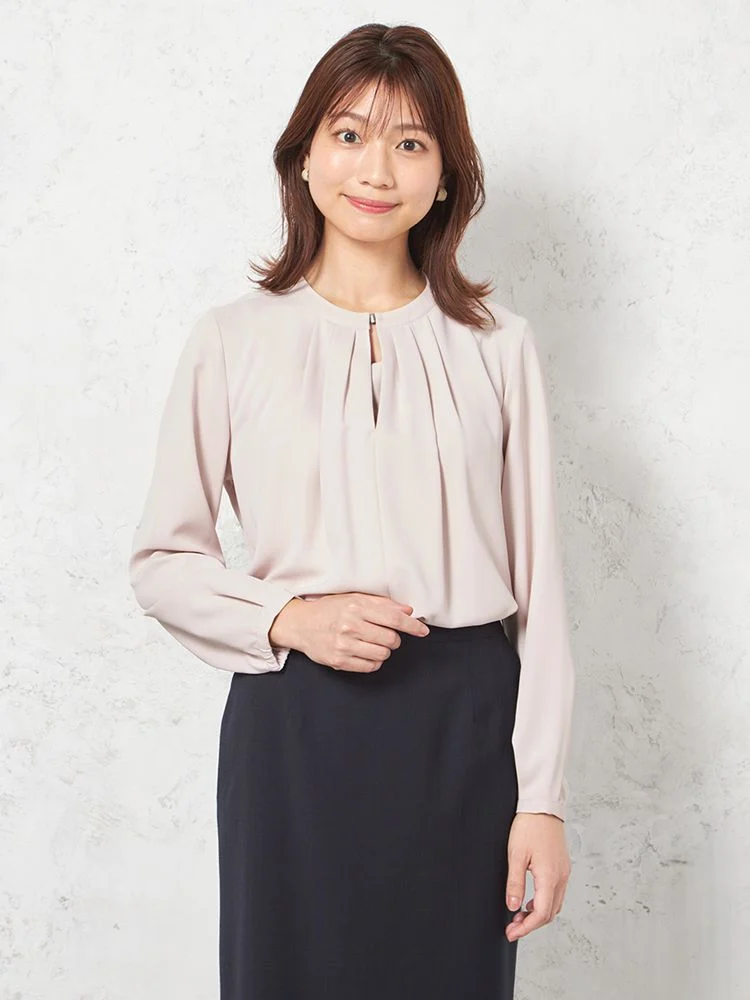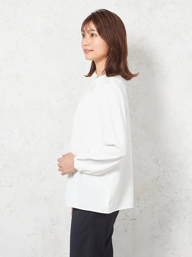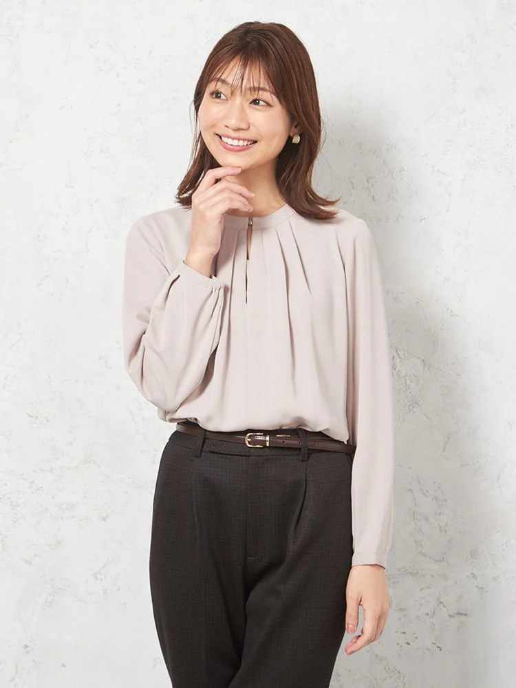 【ウォッシャブル】ブラウス 長袖 クルーネックプルオーバータックブラウス 透けにくい ストレッチ 無地 SOFFICE 通年【レディース】(L.ピンク)