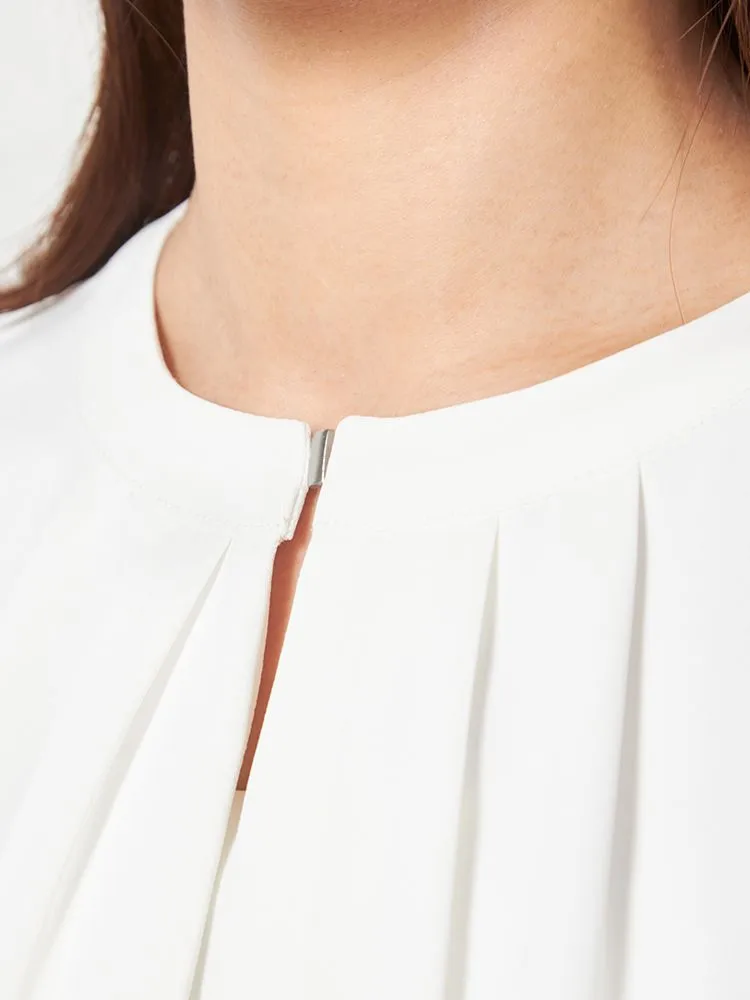 【透けにくい】ブラウス5分袖ハイネックタックデザイン無地SOFFICE春夏【レディース】