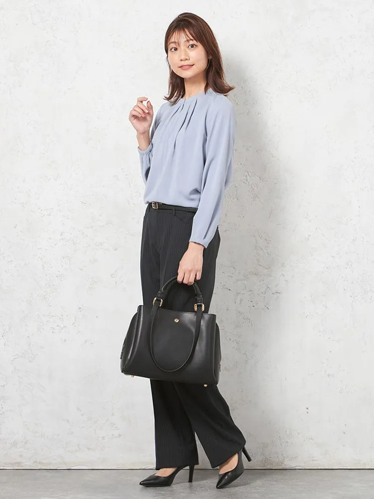 【透けにくい】タックブラウス8分袖2枚仕立てウォッシャブルSOFFICE通年【レディース】