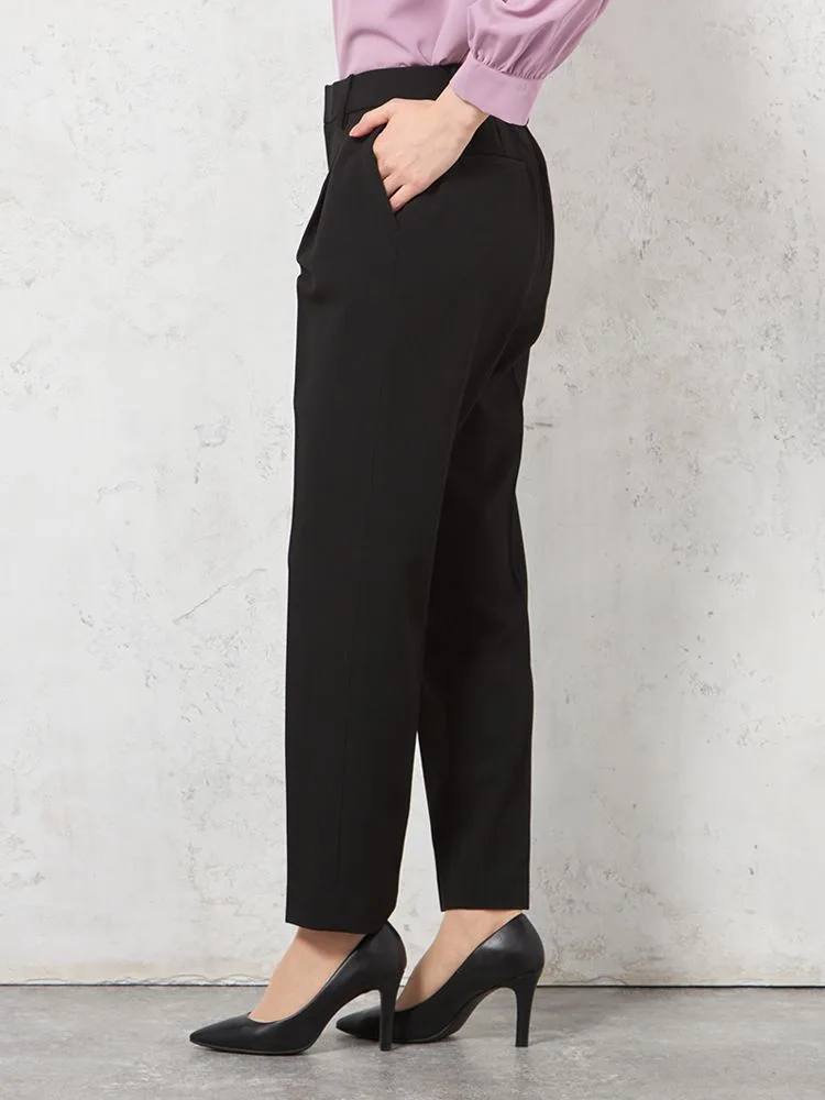 【ウォッシャブル】パンツストレート2WAYストレッチブラックシャドウストライプS&Mknightsbridge通年【レディース】