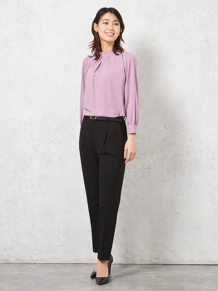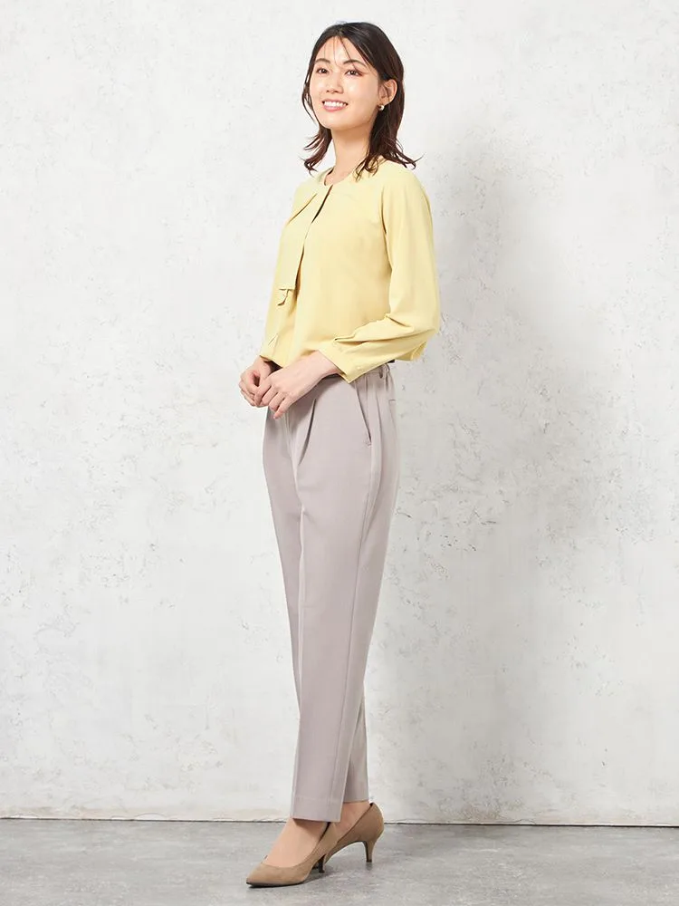 左右に1本ずつ生地の折り込みがあり、標準的なシルエットでシーンを選ばず上品なシルエットが楽しめます。