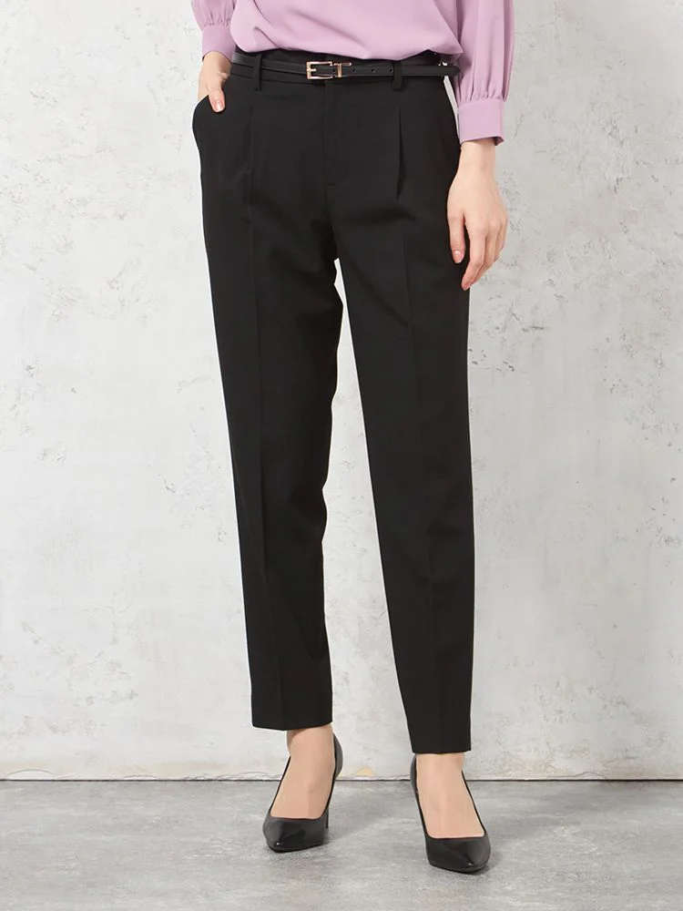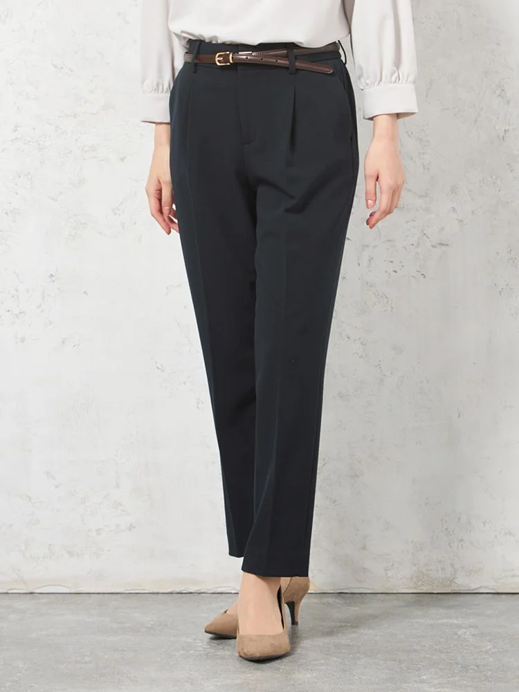 【ウォッシャブル】テーパードパンツ 裏起毛 2WAYストレッチ ワンタック 無地 秋冬【レディース】(ネイビー)