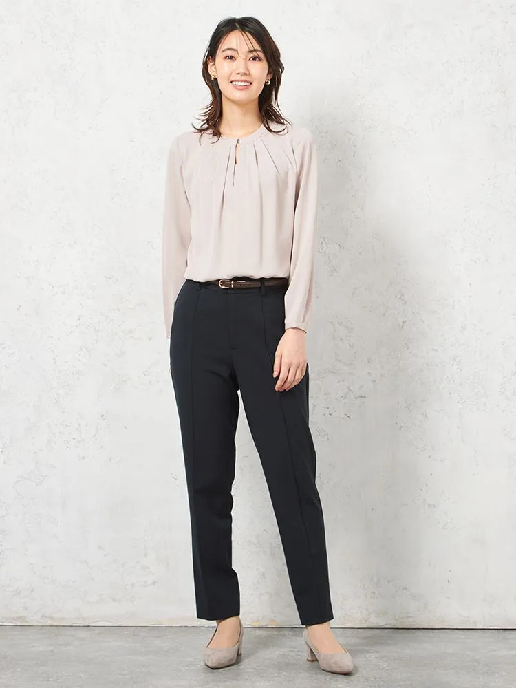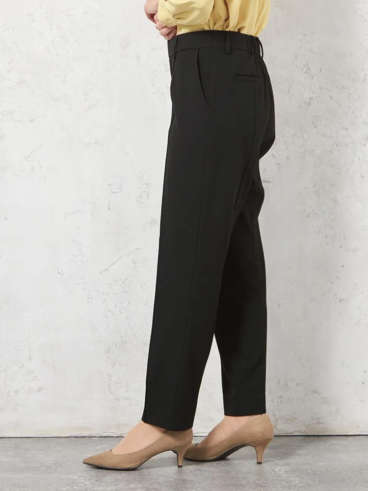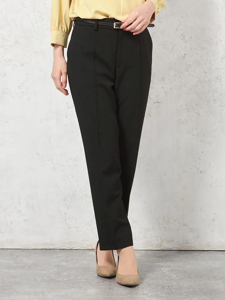 【ウォッシャブル】テーパードパンツ裏起毛2WAYストレッチワンタック無地秋冬【レディース】
