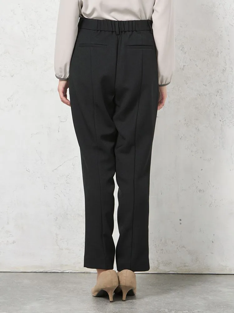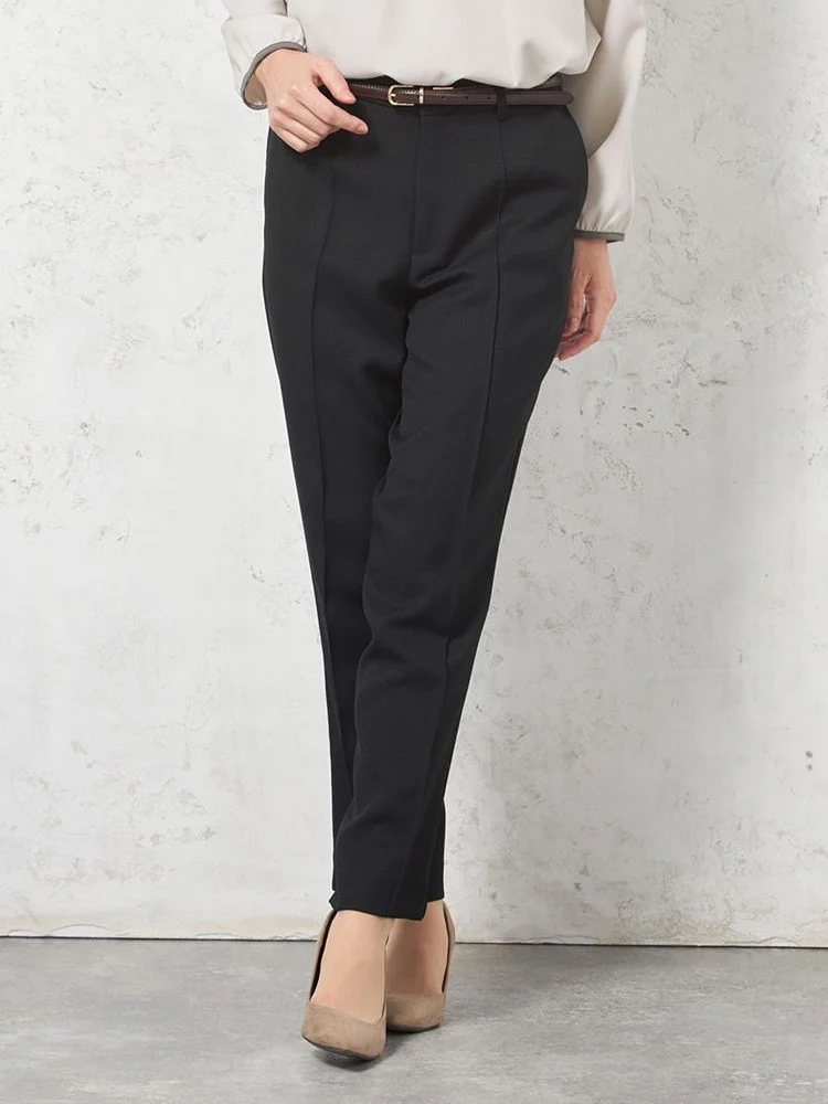 【ウォッシャブル】スティックパンツ ウーリッシュ 2WAYストレッチ 内股シームレス 無地 秋冬【レディース】(ブラック)
