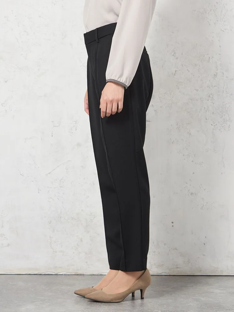 【ウォッシャブル】テーパードパンツ裏起毛2WAYストレッチワンタック無地秋冬【レディース】