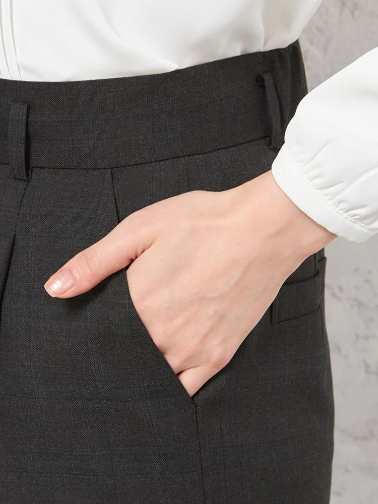 【働ラク肩ラクスーツ】パンツ ワイド ウォッシャブル ストレッチ グレーチェック SOFFICE 秋冬【レディース】