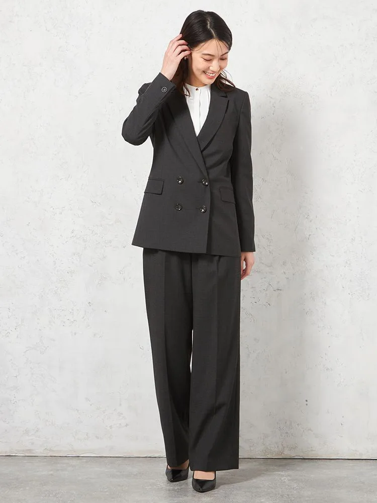 【働ラク肩ラクスーツ】ウールライクワイドパンツウォッシャブルストレッチSOFFICE秋冬【レディース】
