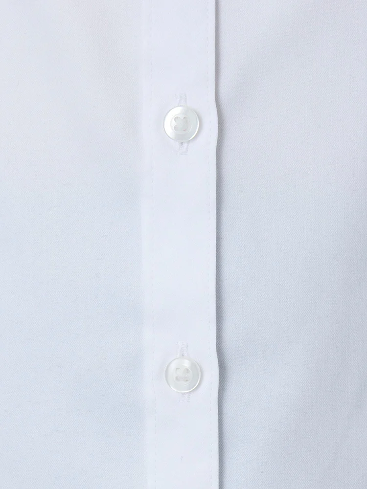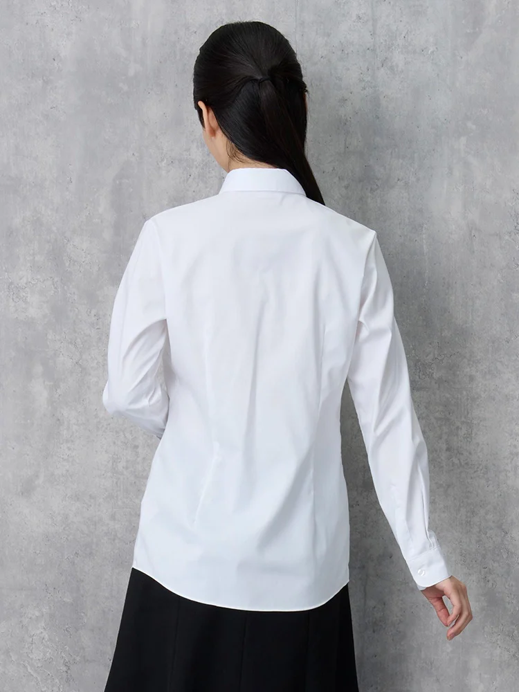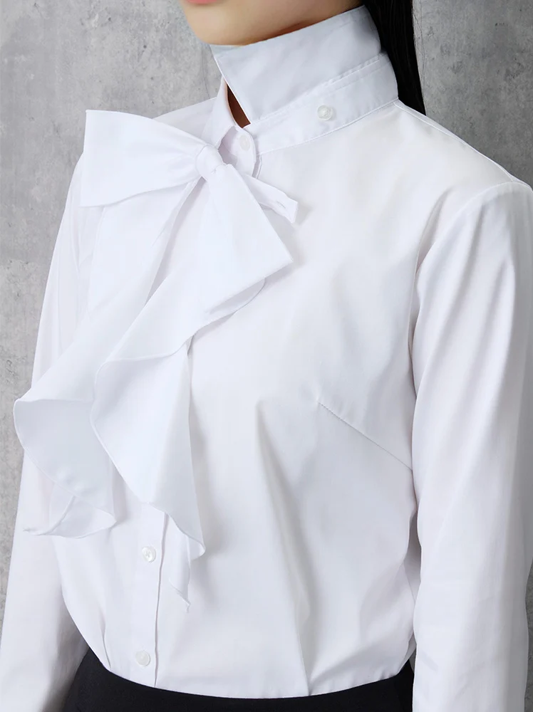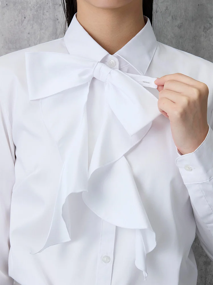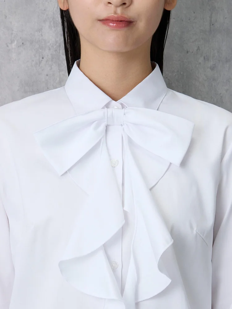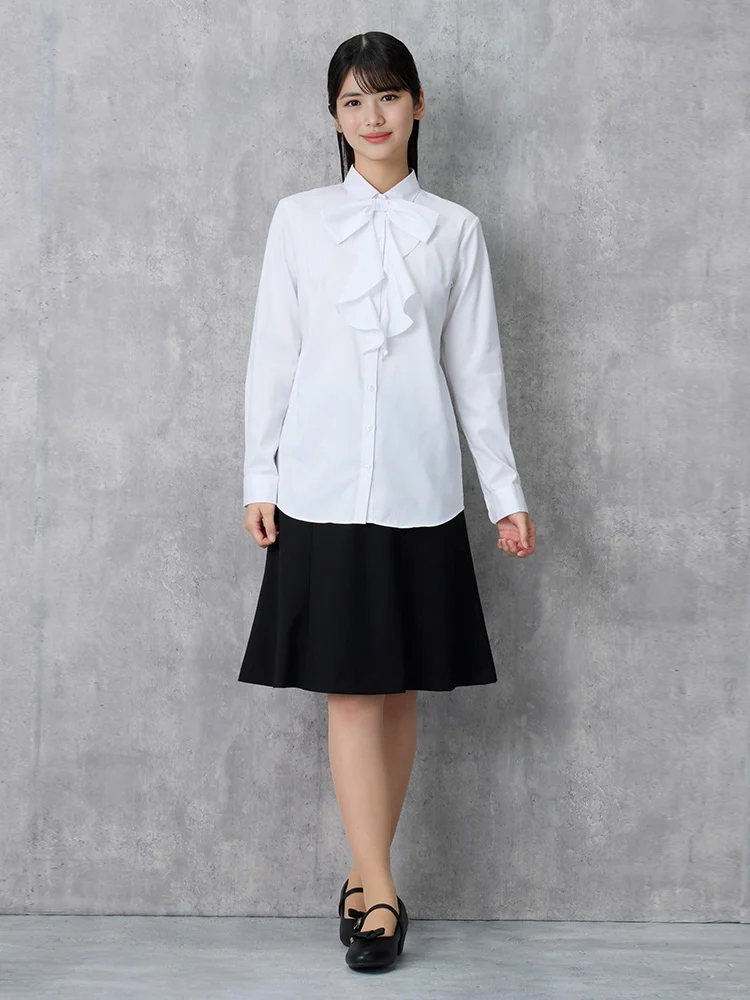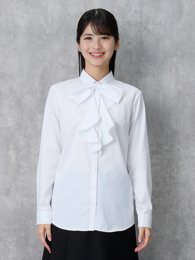 リボンを取り外すと、シンプルなレギュラーカラーの白無地ブラウスとして着用できるので長くご愛用いただけます。