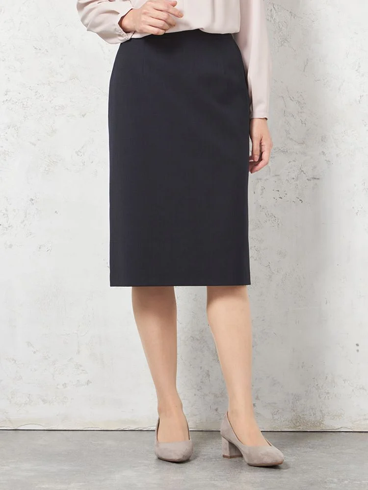 【働ラク肩ラクスーツ】スカート 膝丈タイト ウォッシャブル ストレッチ ネイビーチェック S&M WHITE 秋冬【レディース】