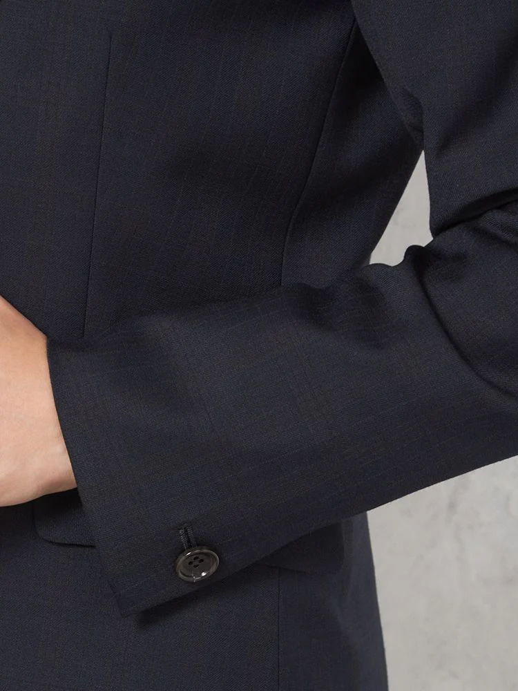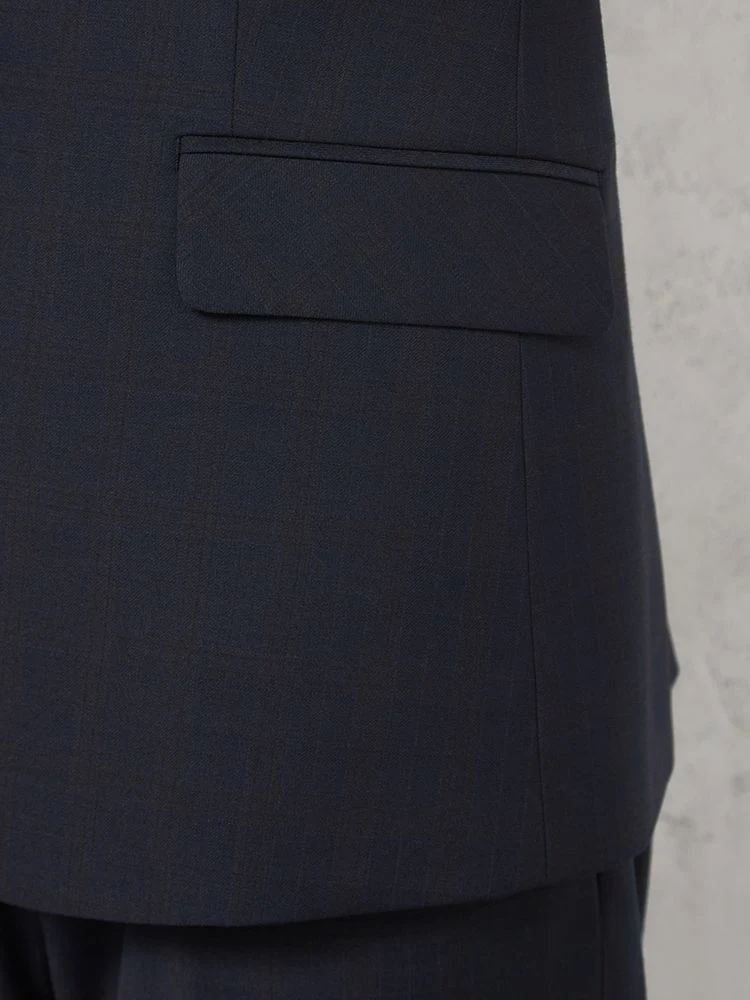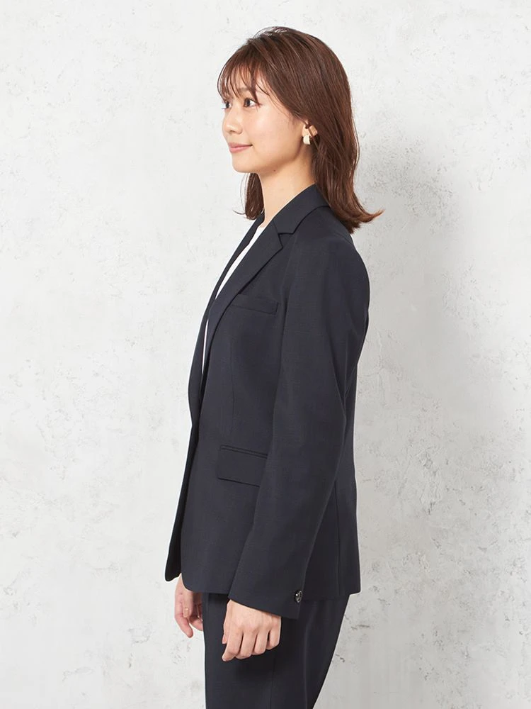 切り込みが1本のセンターベントデザインです。細身でスッキリとしたシルエットが特徴で、快適な着心地を提供します