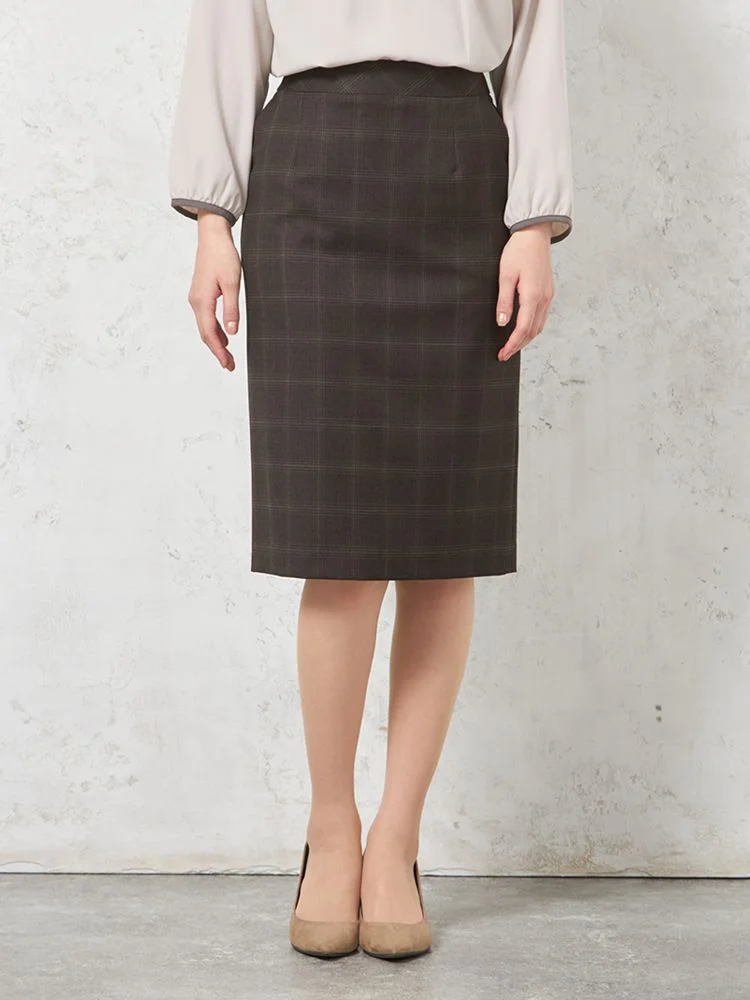 【ストレッチ】スカート タイト【REDA FLEXO】ストレッチインベル ブラウン チェック STOVEL&MASON 秋冬【レディース】