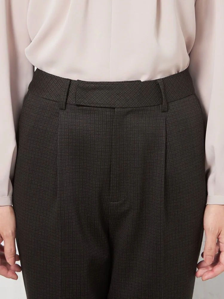 左右に1本ずつ生地の折り込みがあり、標準的なシルエットでシーンを選ばず上品なシルエットが楽しめます。