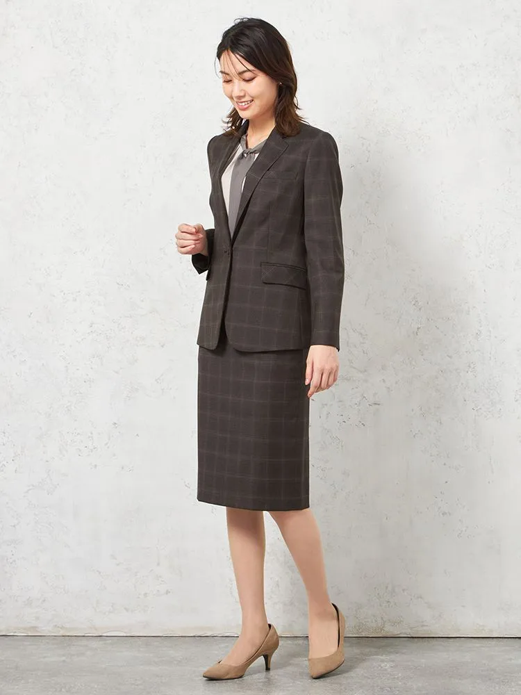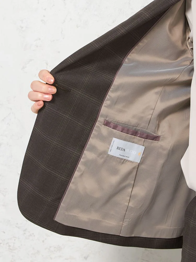 【ストレッチ】ジャケット 1つボタン【REDA FLEXO】 ブラウン チェック STOVEL&MASON 秋冬【レディース】