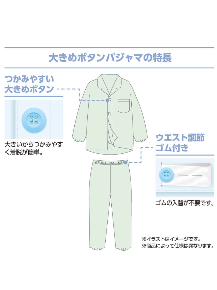 メンズ 大きめボタンパジャマ/紳士用/年間素材/パジャマ/介護/入院/高齢者/大きめボタン/留め外ししやすい/敬老の日/ギフト/プレゼント 【CF】(L.グレー)
