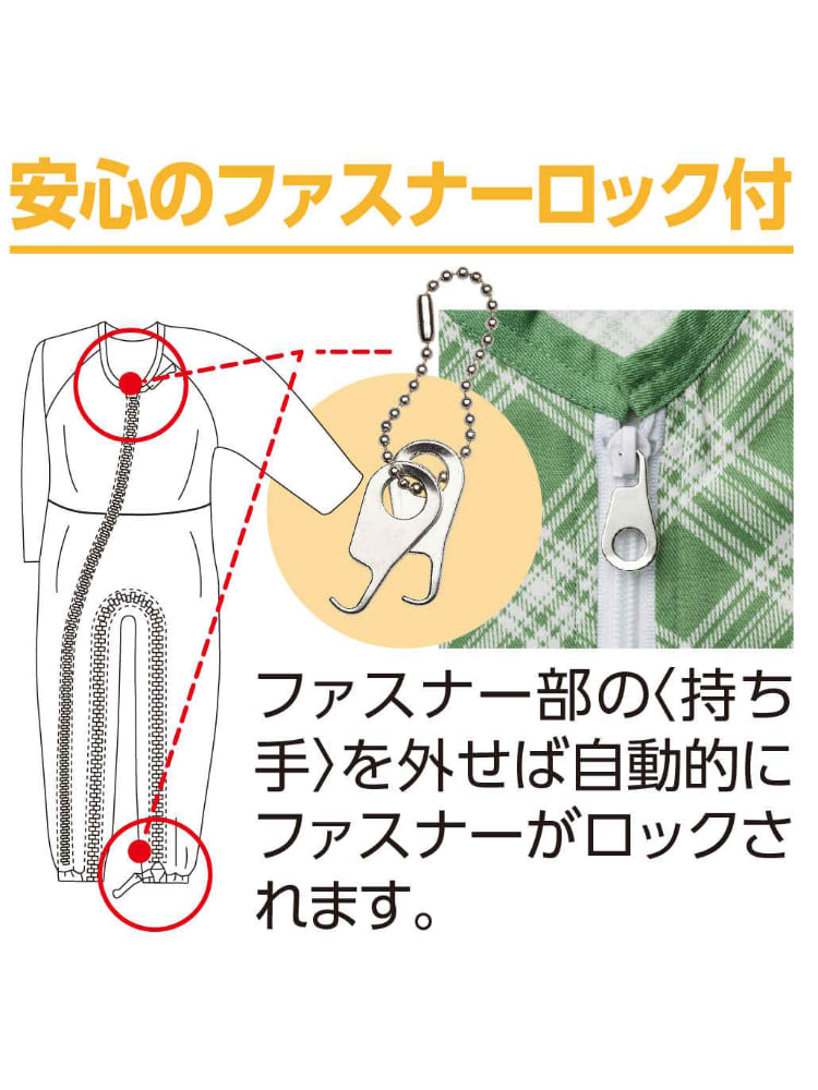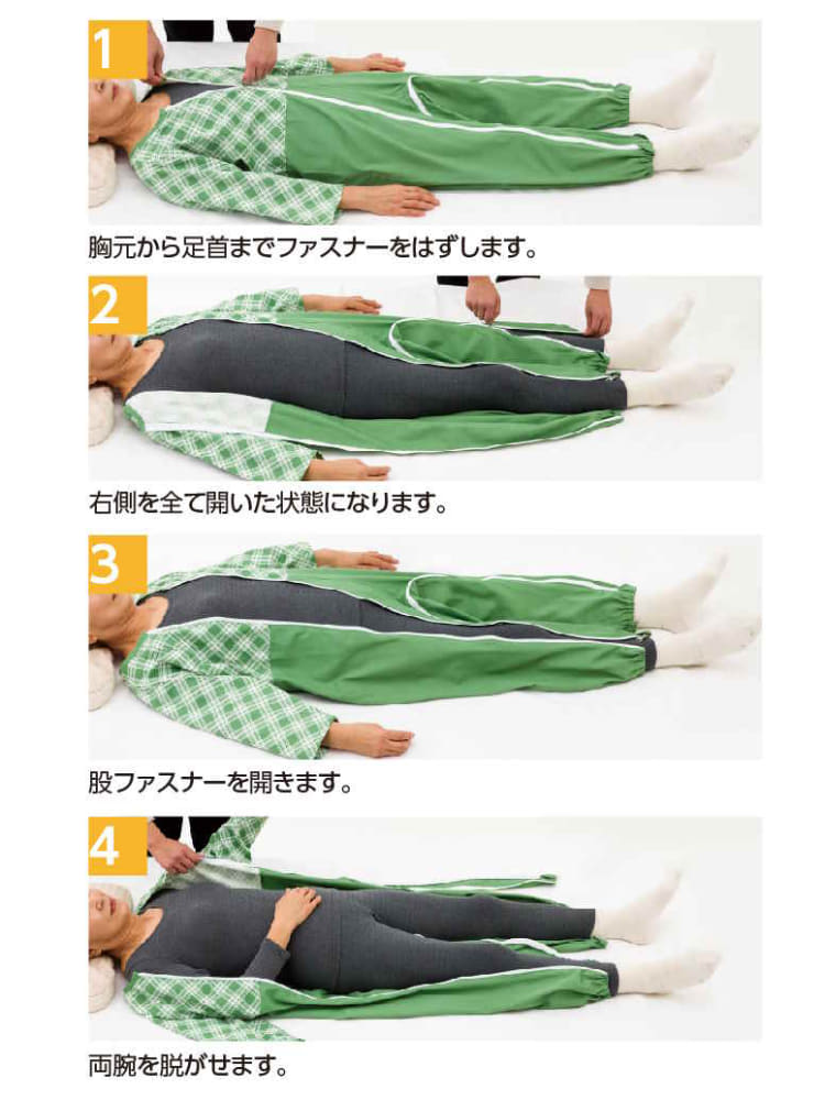 前ファスナーは寝たきりの方の更衣にとても便利。