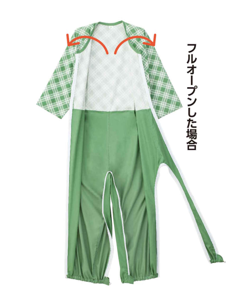フルオープンできるので、寝たきりの方でも無理なく着脱ができます。