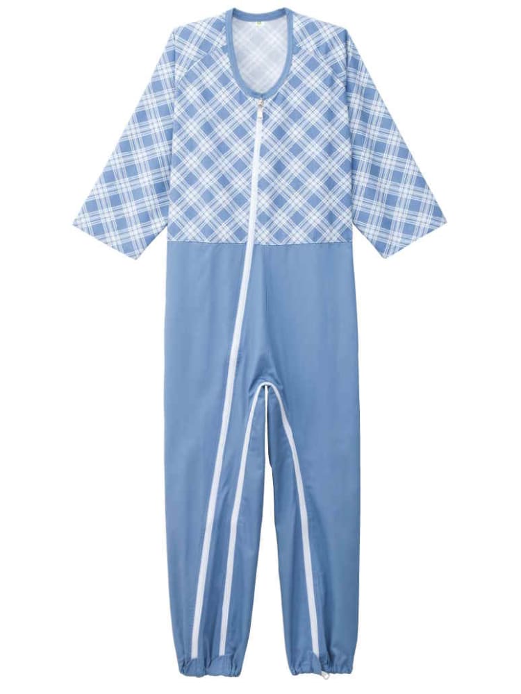 男女兼用 介護用フルオープンつなぎパジャマ/介護/入院/施設/シニア/高齢者/紳士/婦人/おむつ交換/敬老の日/ギフト/プレゼント 【CF】(ブルー)