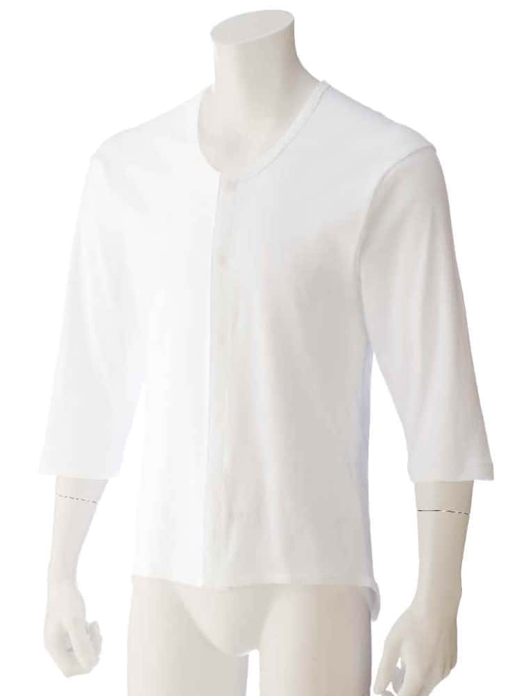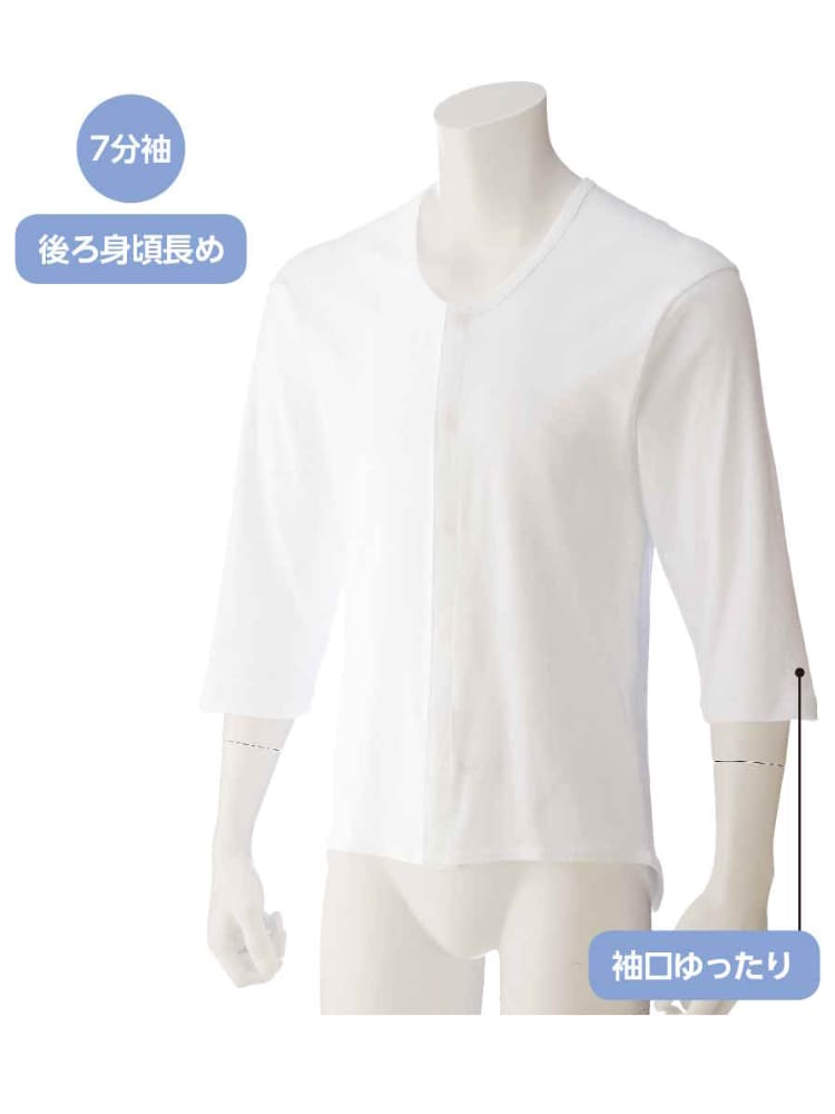 メンズ 7分袖乾燥機対応ホックシャツ/紳士用/メンズ/肌着/インナー/乾燥機OK/後ろ長め/前開き/綿100%/敬老の日/ギフト/プレゼント 【CF】