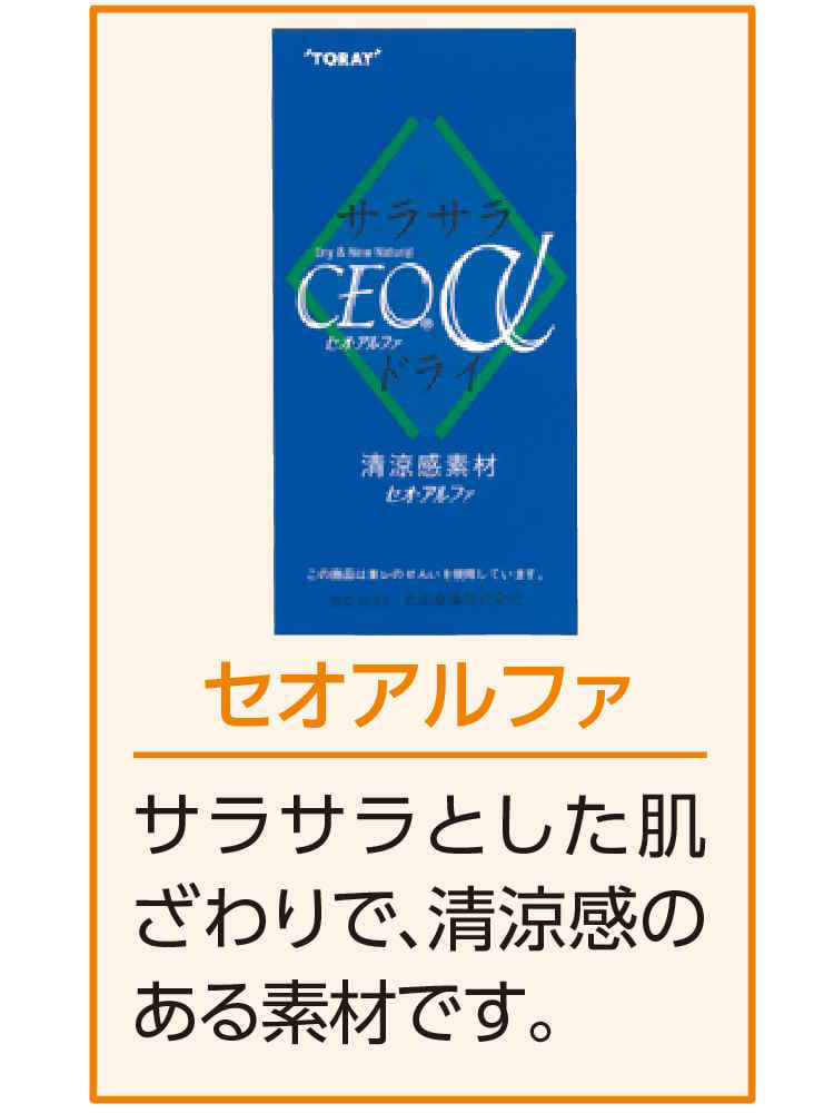春夏向けの清涼感素材「セオ・アルファ」を使用しています。 サラサラと肌をすべる、爽やかな着用感で汗知らず。国産素材を使ったはき心地抜群のパンツ。シルエットの美しさも自慢です。?