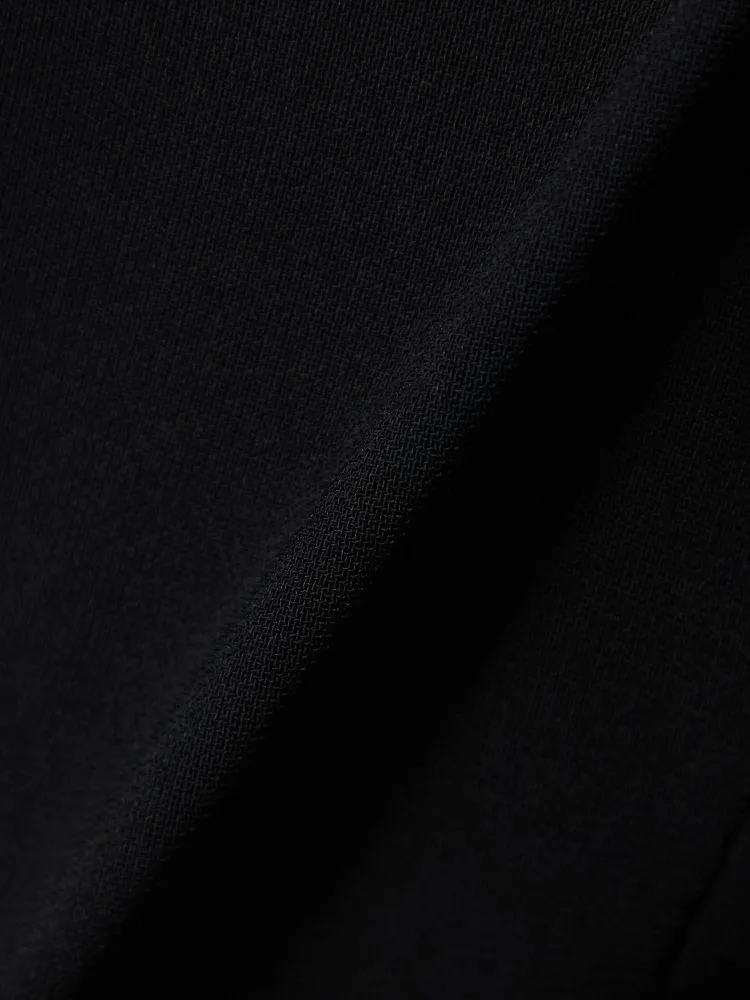 パンツの腰回りに生地の折り込みがなく、スッキリとしたシルエットを実現します。シンプルで洗練された印象を与え、すっきりとした着こなしが可能です。
