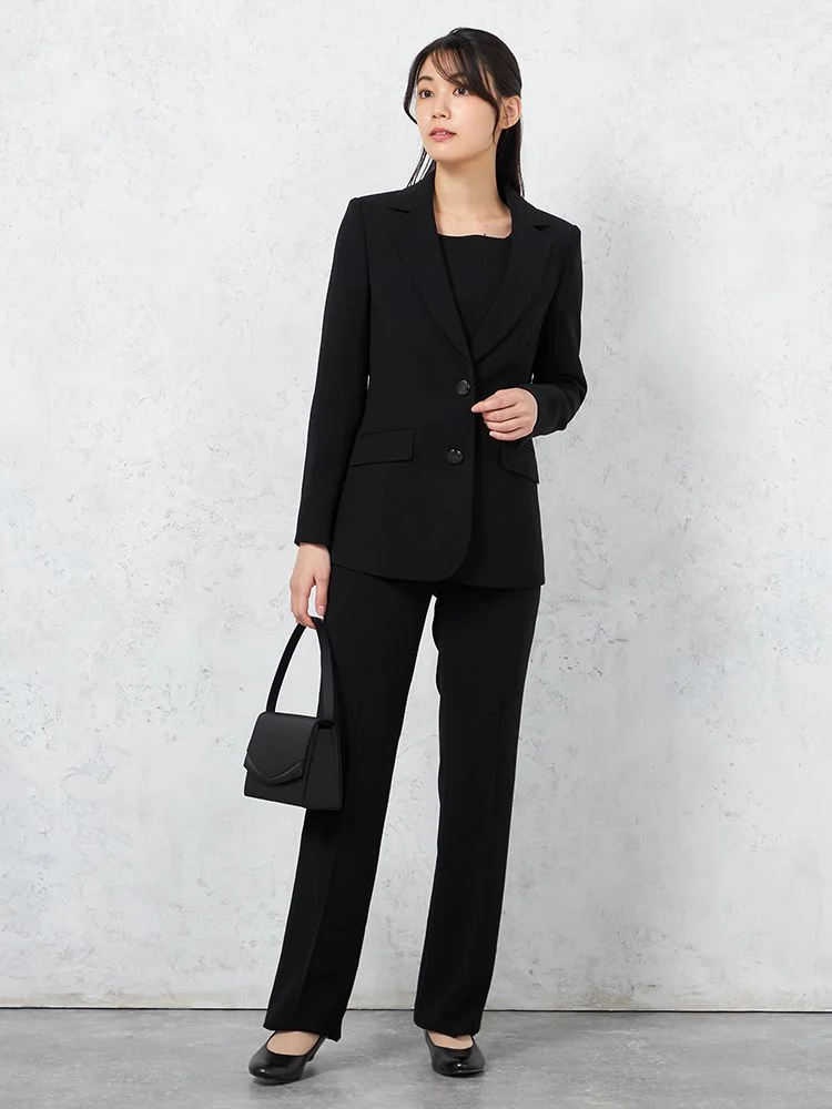 【ウォッシャブル】フォーマル ジャケット/トップス/パンツ 3点セット ストレッチ 黒無地 通年【レディース】