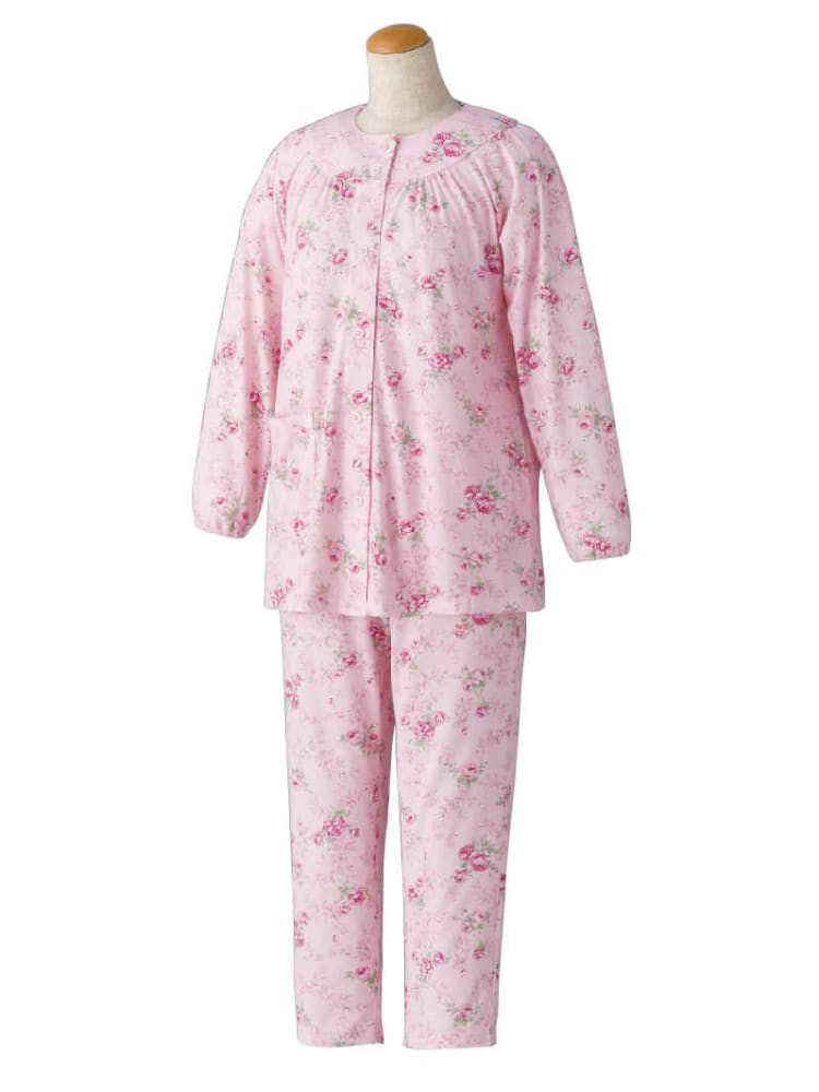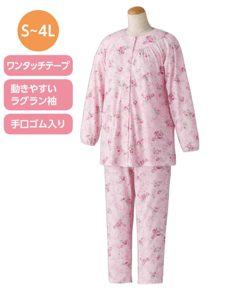 ワンタッチパジャマ/婦人用/レディース/前開き/介護/入院/シニア/寝巻/敬老の日/ギフト/プレゼント 【CF】(ピンク)