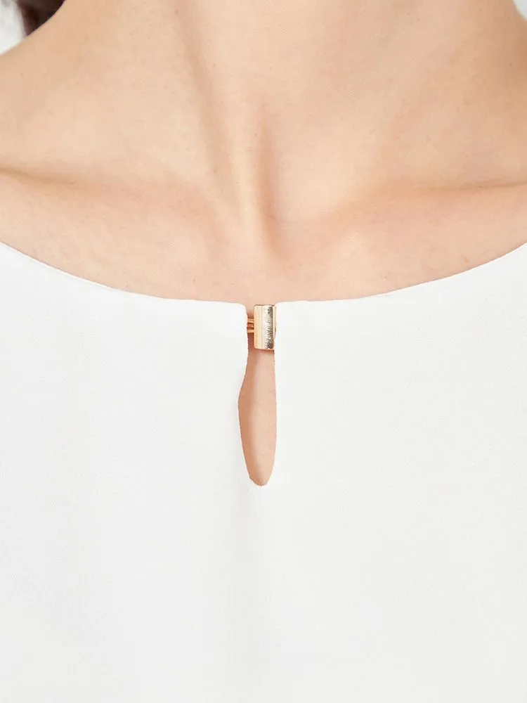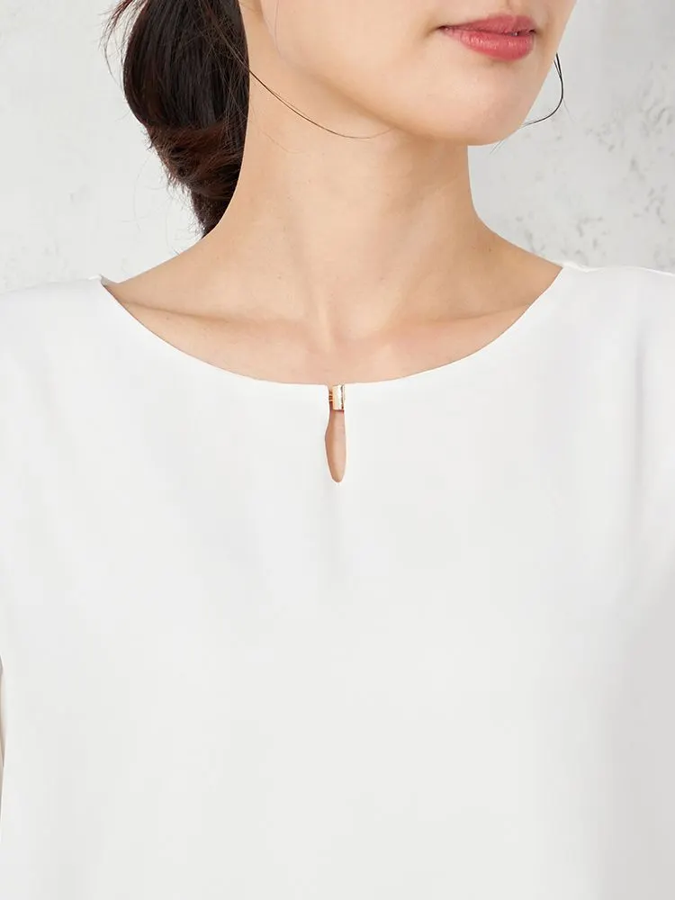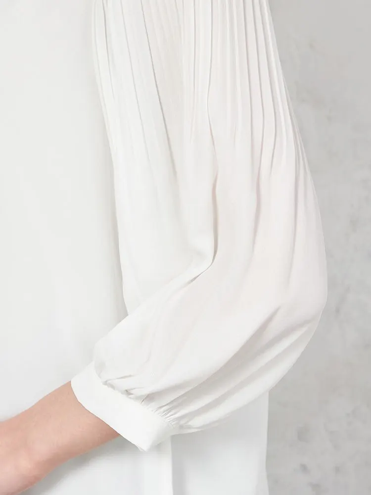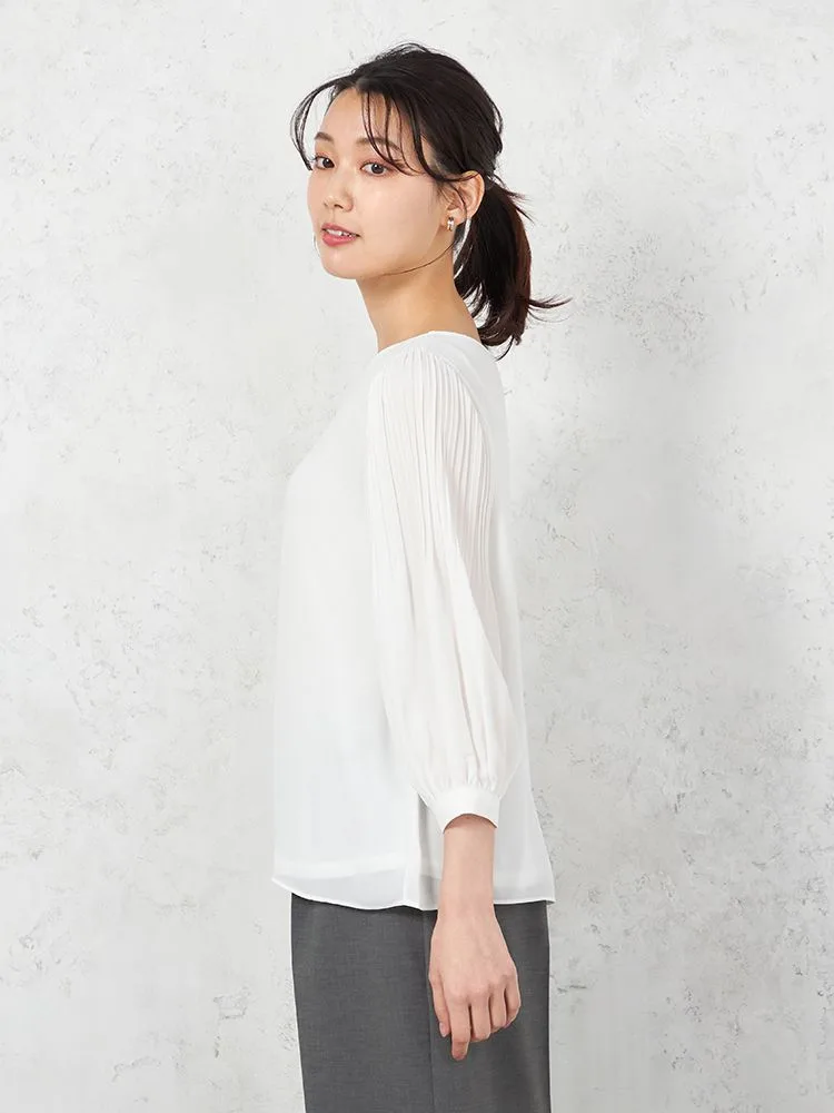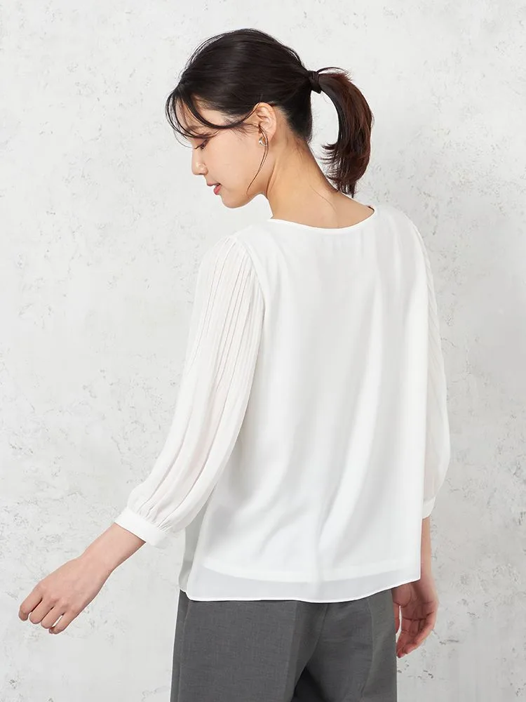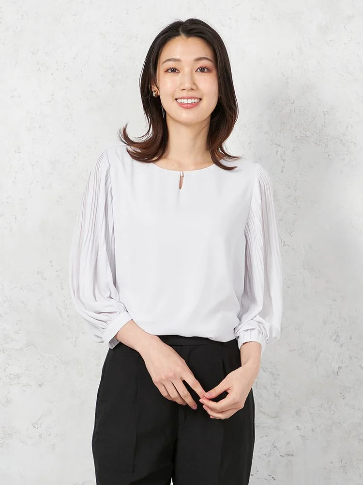 袖にプリーツを施すことで、軽やかなエレガンスを表現したブラウス。