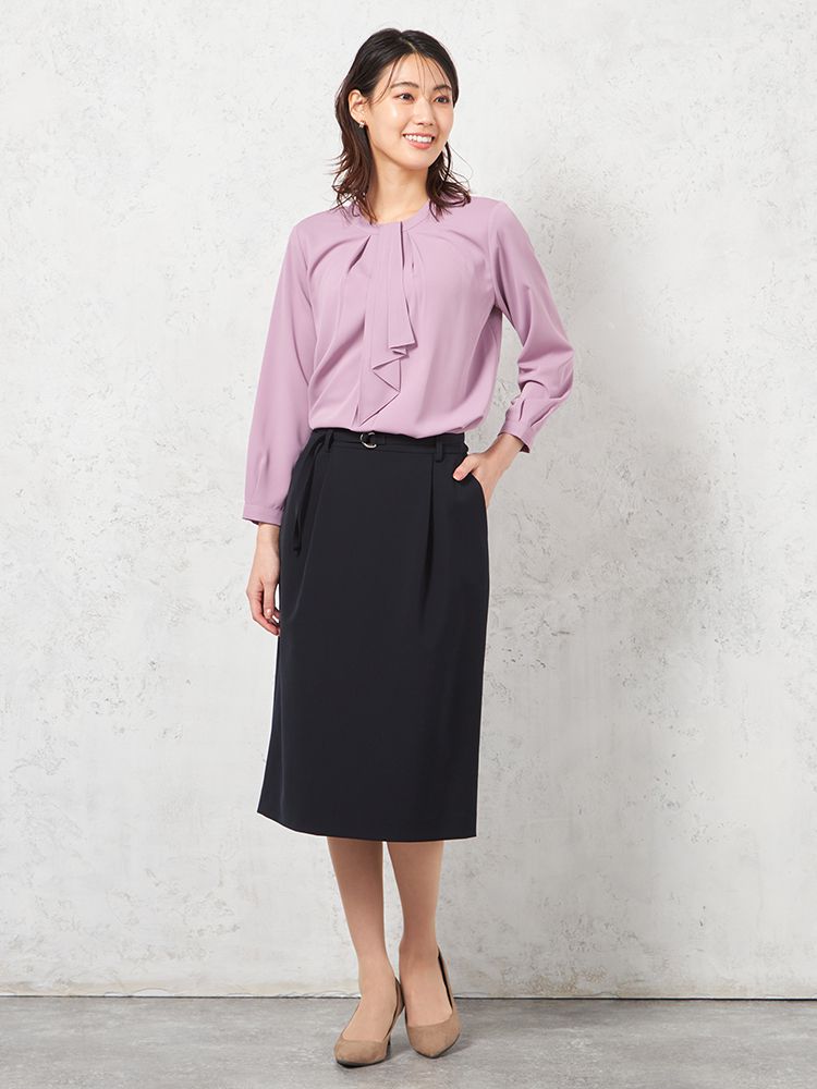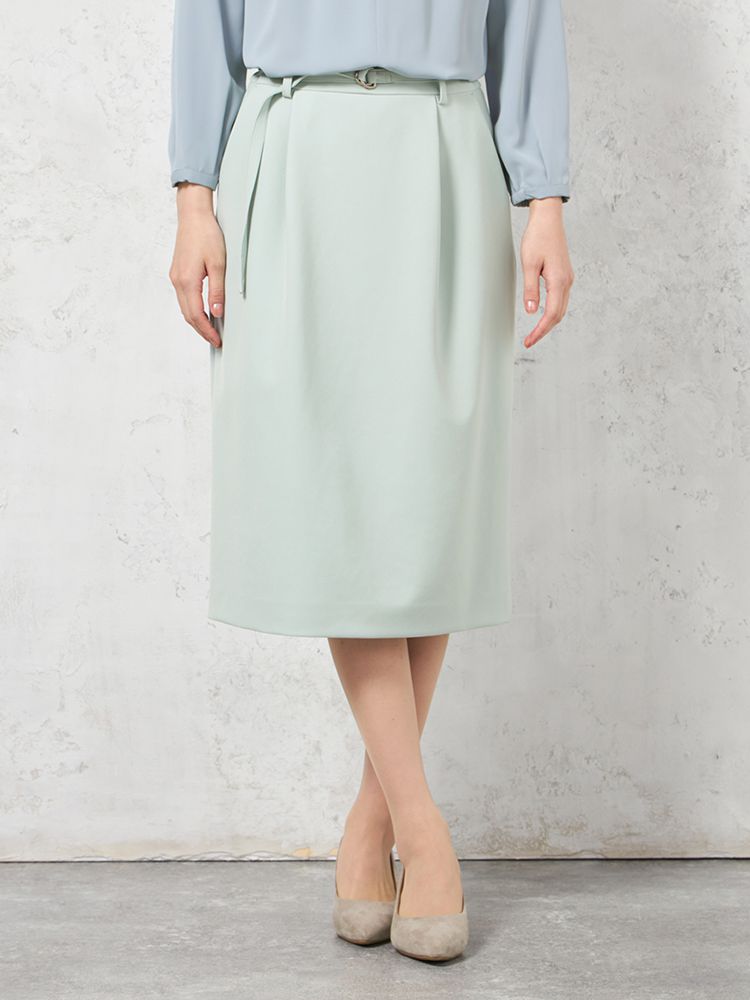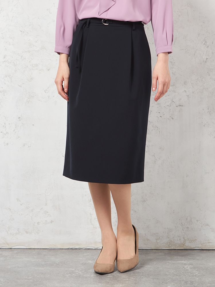 【ウォッシャブル】タイトスカート ベルト付き ストレッチ【ビジネス/セレモニー】無地 SOFFICE 通年【レディース】(ネイビー)