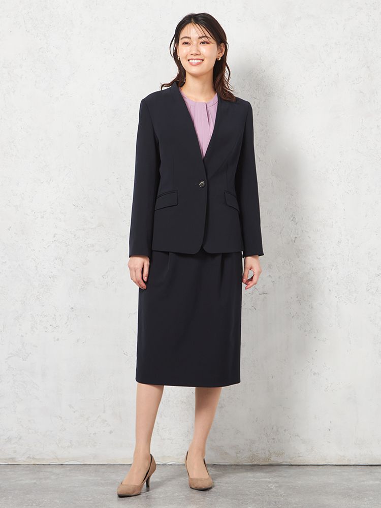 【働ラク肩ラクスーツ】スカート膝丈タイトウォッシャブルストレッチネイビーストライプSOFFICE秋冬【レディース】