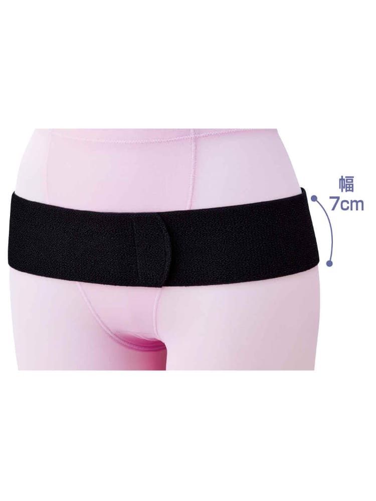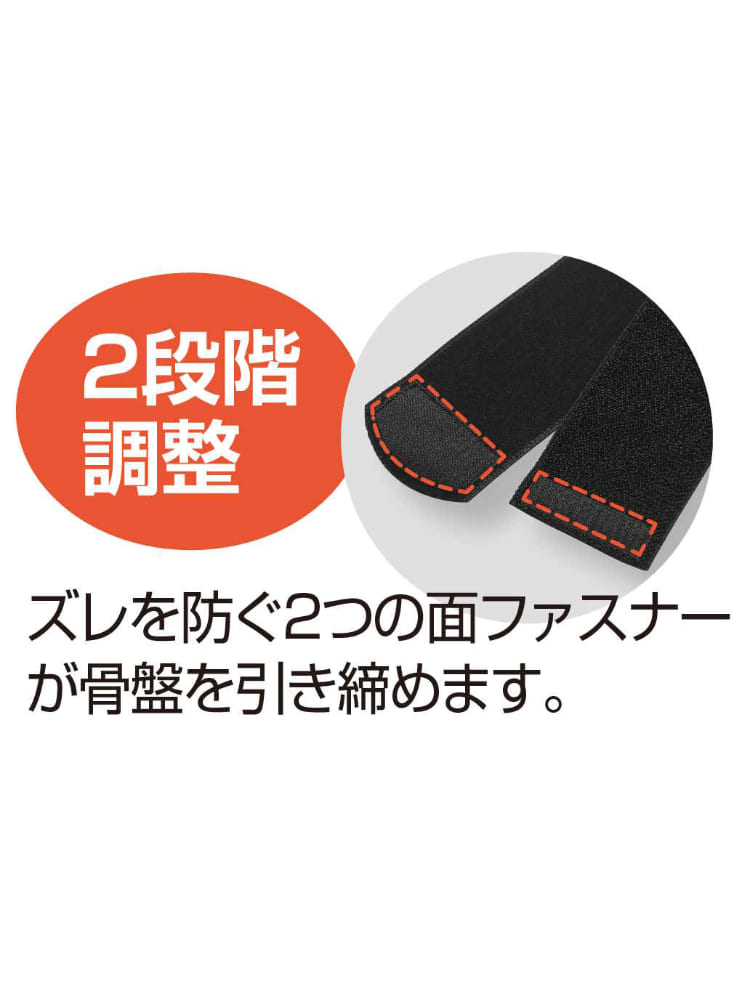 動作を妨げない細さ&薄さが人気の理由。骨盤を安定させる伸縮性と、ピタッとフィットさせる2段階調節で好みの位置に付けられます。