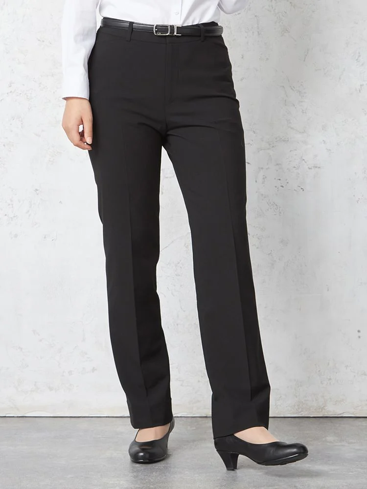 【ウォッシャブル】パンツ ストレート ストレッチ 黒無地 S&M Knights bridge 通年【レディース】