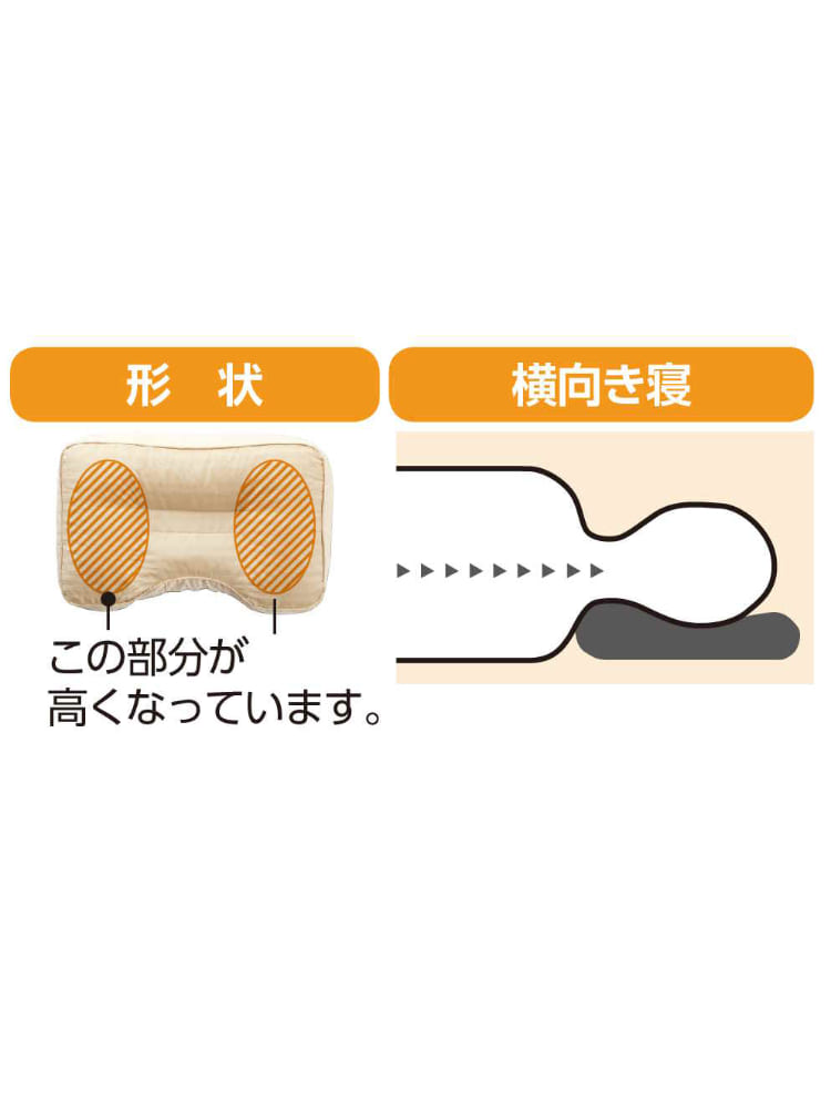 肩こりやいびきにお悩みの方へおすすめの、横向き枕。肩幅を補う高さで、頸椎や頸への負担を軽減。型くずれしにくい構造と寝返りしやすいアーチ形で、頭をしっかり支えます。中材には通気性耐久性弾力性のあるパイプを使用。