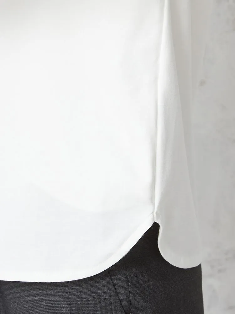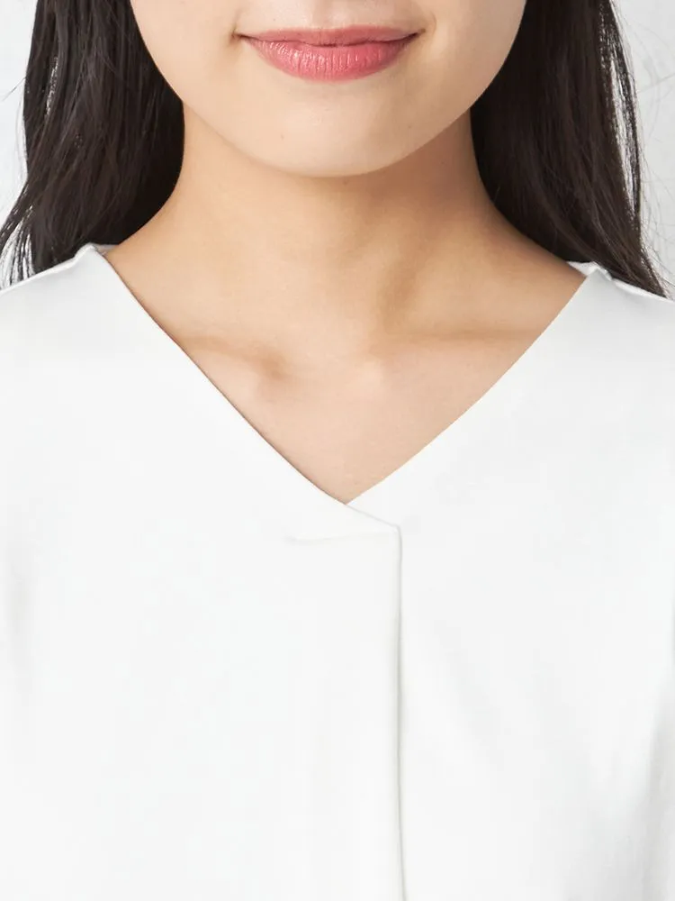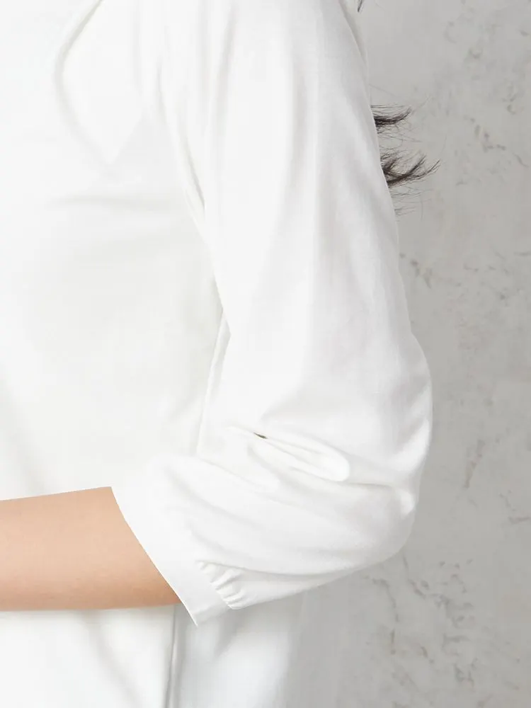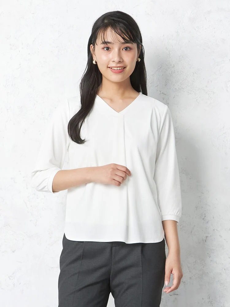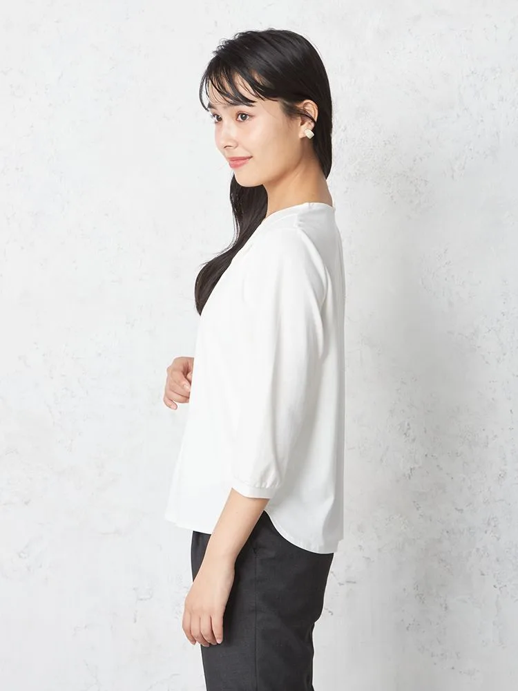 滑らかで肌触りの良いシルキーな素材感が快適な着心地の七分袖Vネックカットソー。